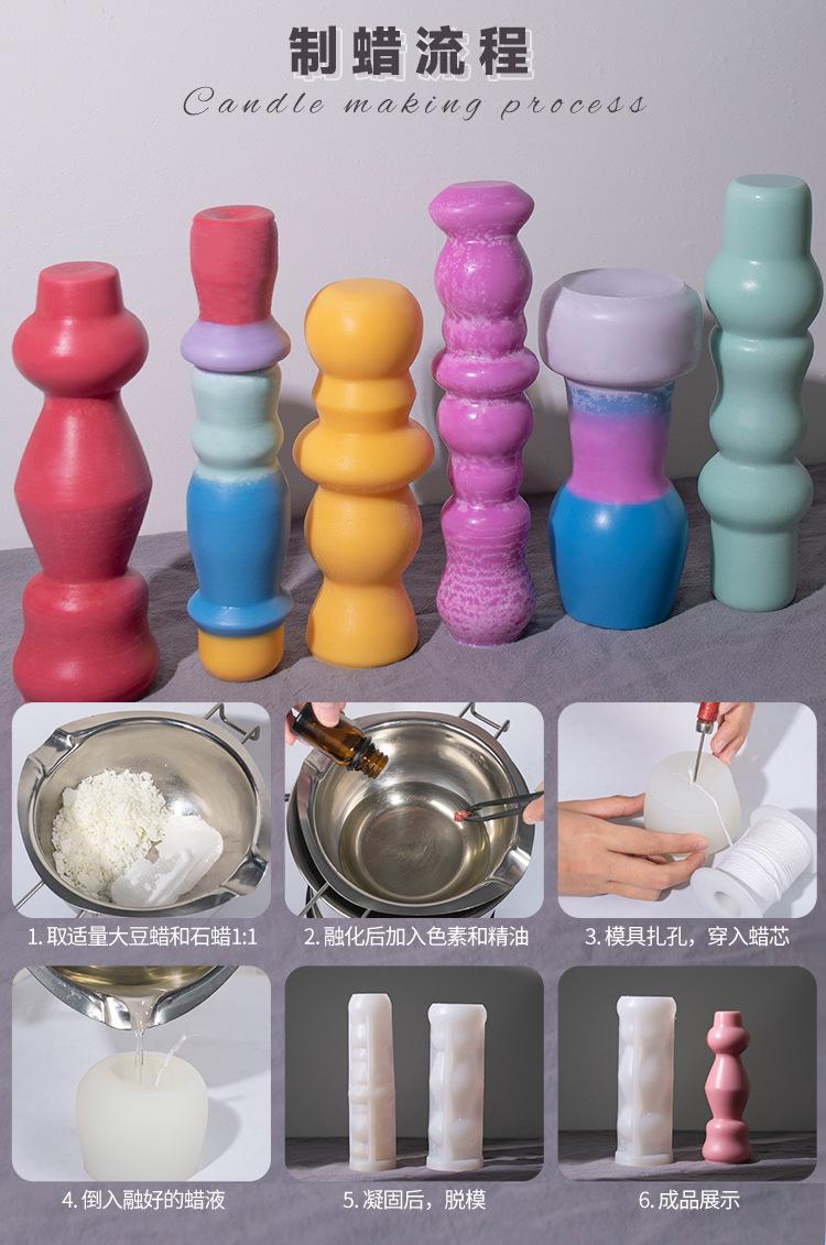 [Nombre del producto]: Molde para vela perfumada [Material]:Material de silicona [Uso]: Vela perfumada DIY。 [Características]: Duradero, resistente a bajas temperaturas, de forma novedosa, de estilo cambiante, fácil de desmoldar, impermeable y fácil de limpiar. |