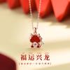 Collar Chang'E Weiyang de Plata S925 para Mujer con Colgante de Carácter de Ágata Roja, Joyería al por Mayor Versátil de Estilo Nicho Trendy Chino