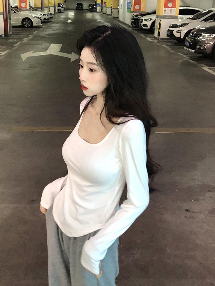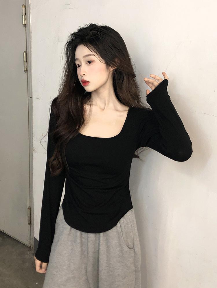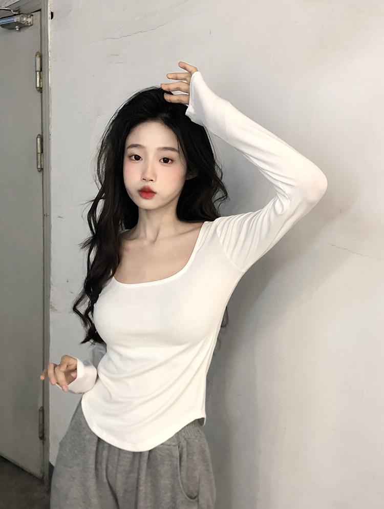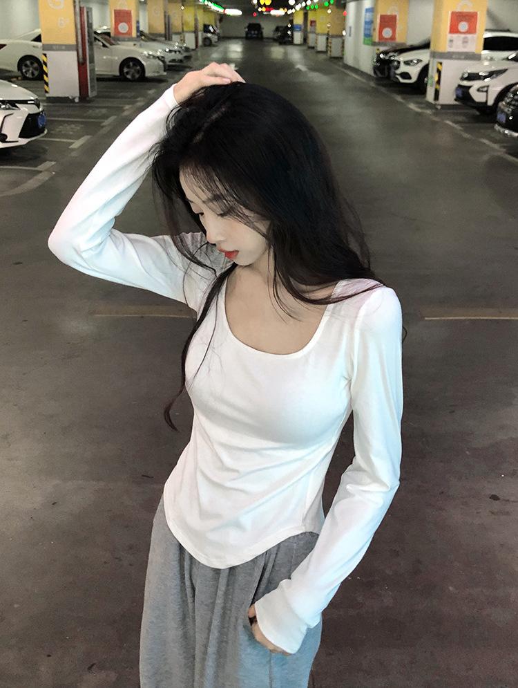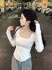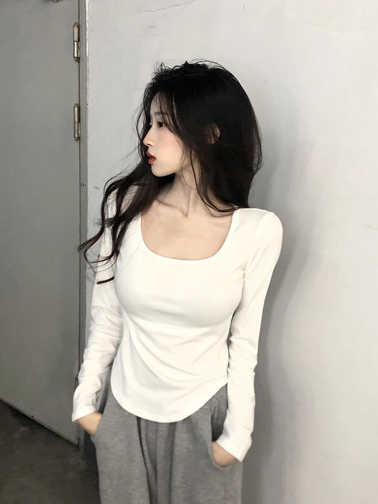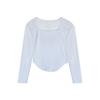 Camiseta blanca de manga larga para mujer, otoño 2024, nuevo diseño, parte superior irregular, color liso, corta.