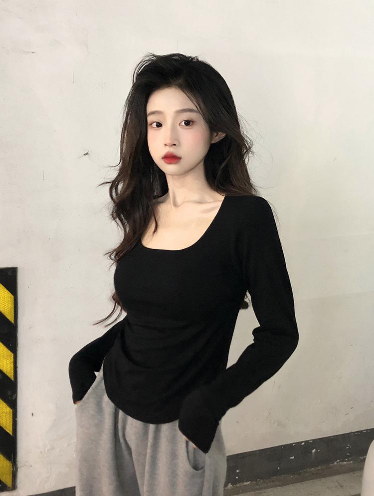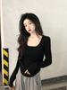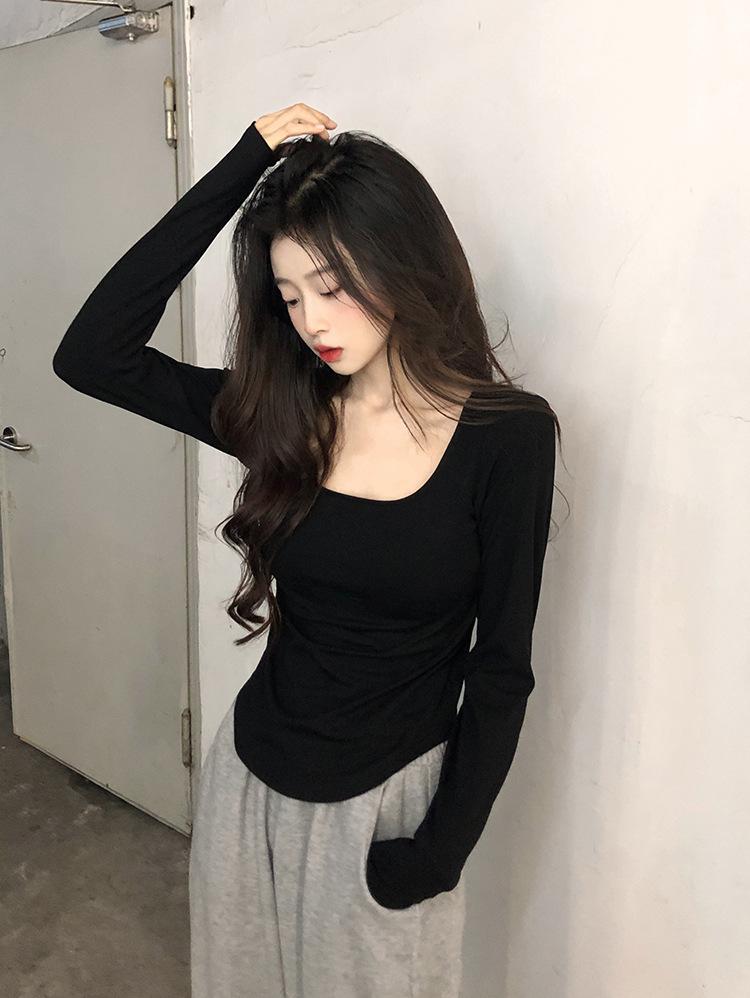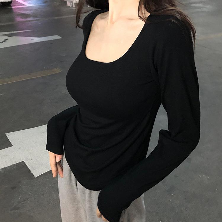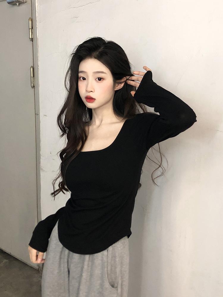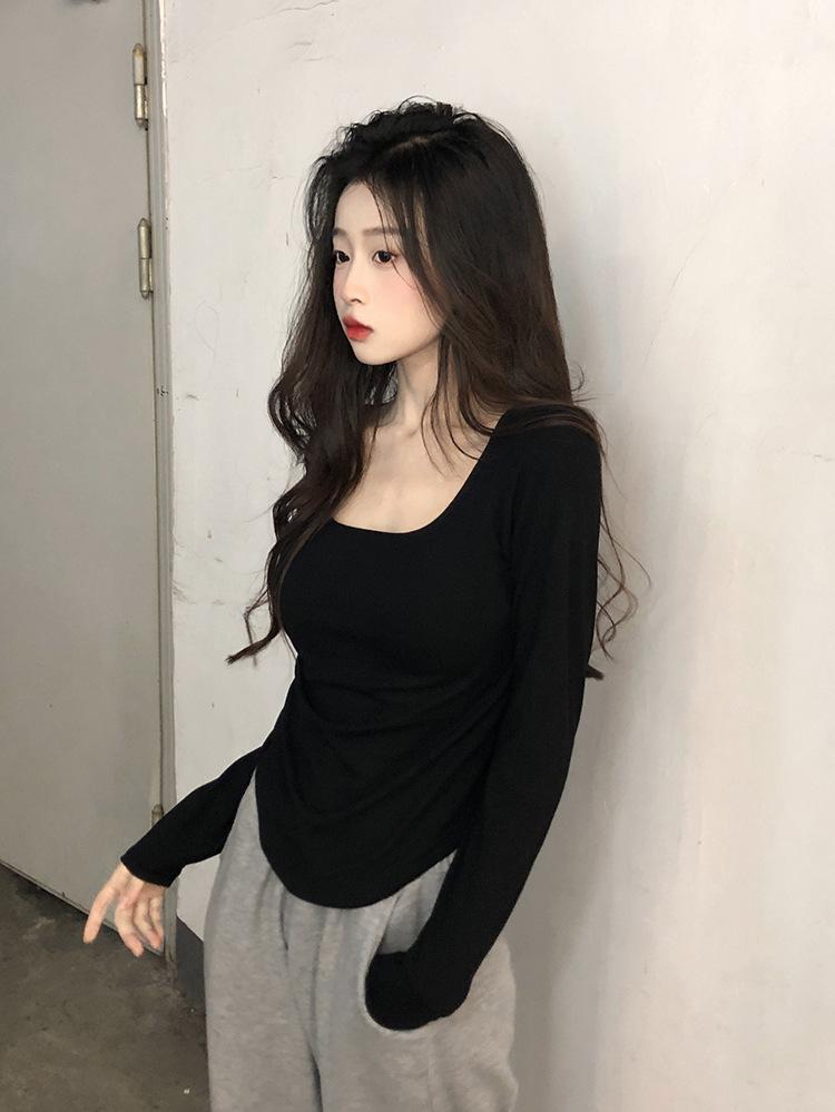 Camiseta blanca de manga larga para mujer, otoño 2024, nuevo diseño, parte superior irregular, color liso, corta.