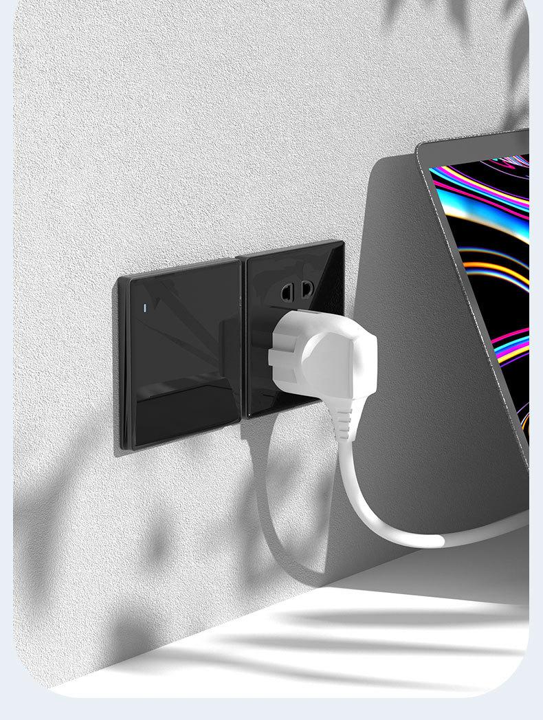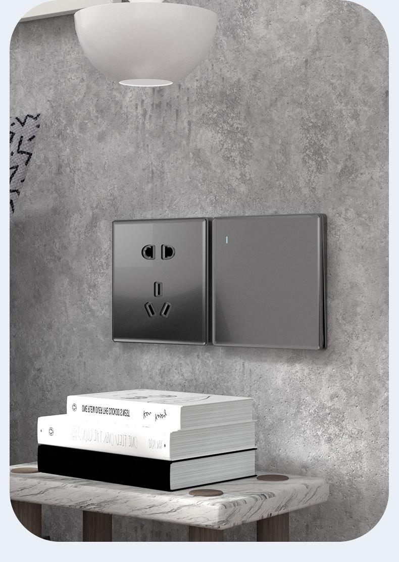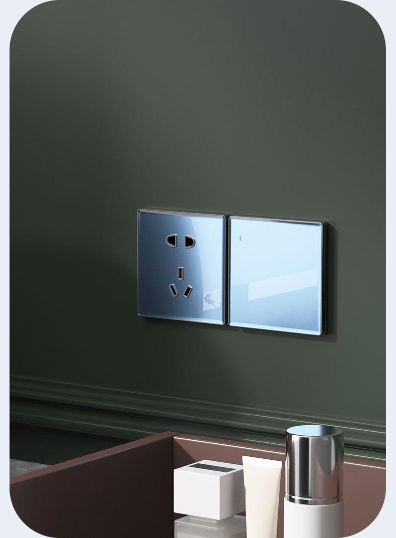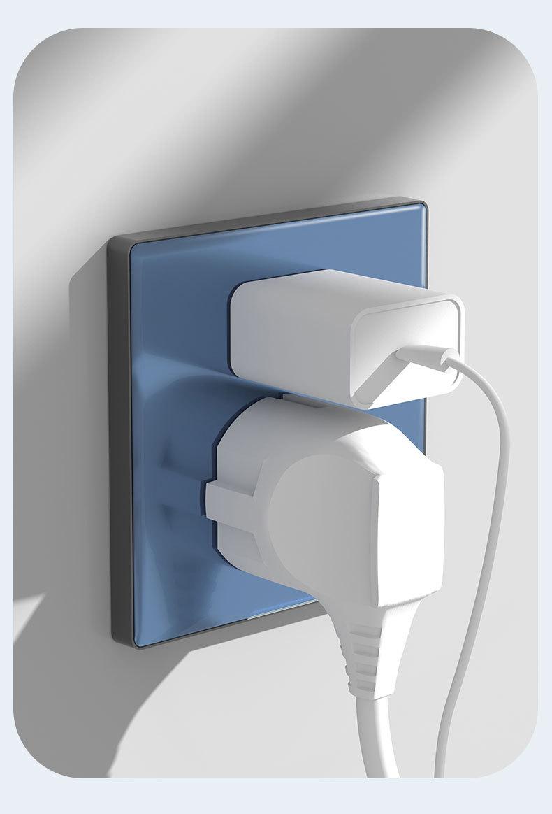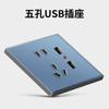 Interruptor de pared ultrafino azul de vidrio templado de un toque con doble control, 86 oculto, toma de pared de cinco orificios con dos enchufes de dos y tres clavijas, venta al por mayor