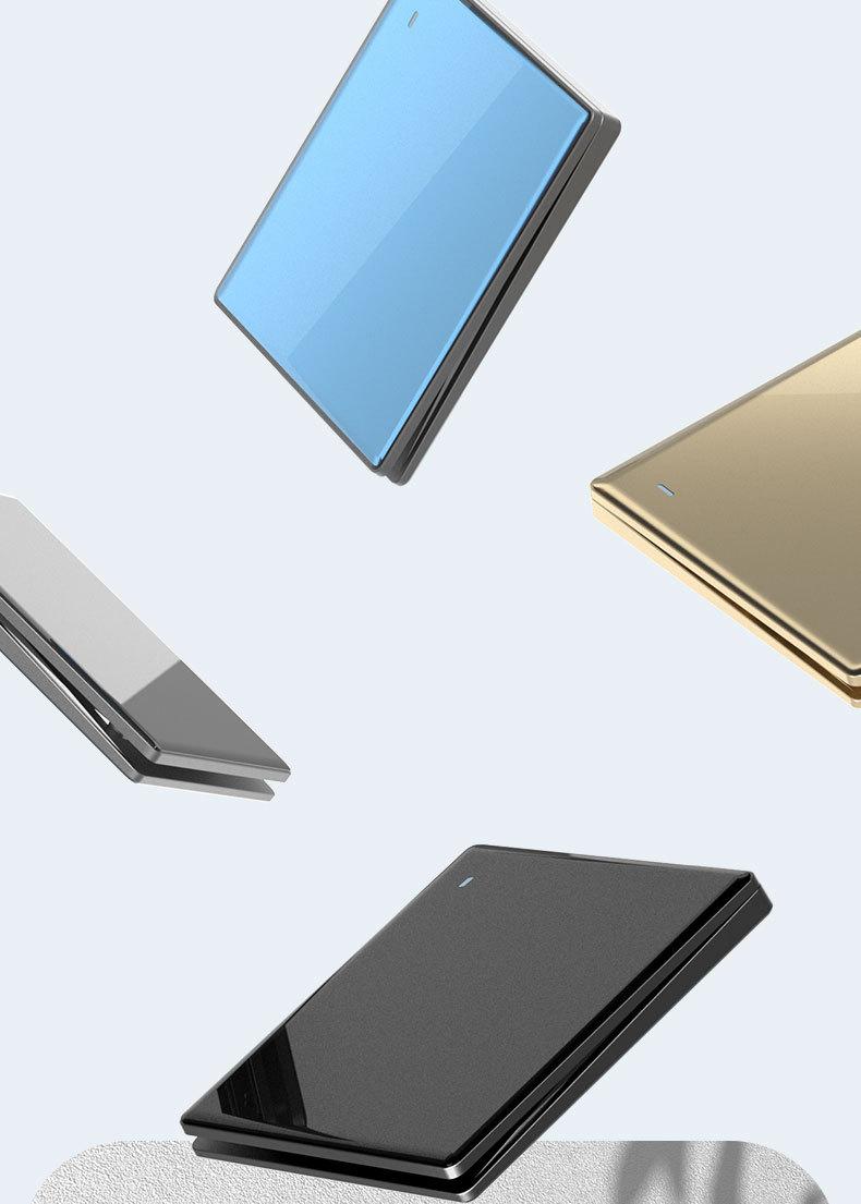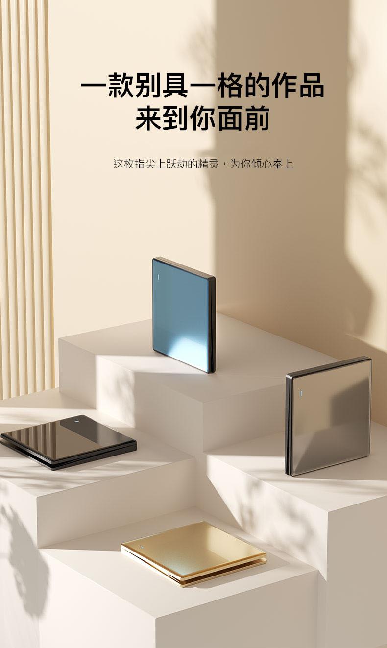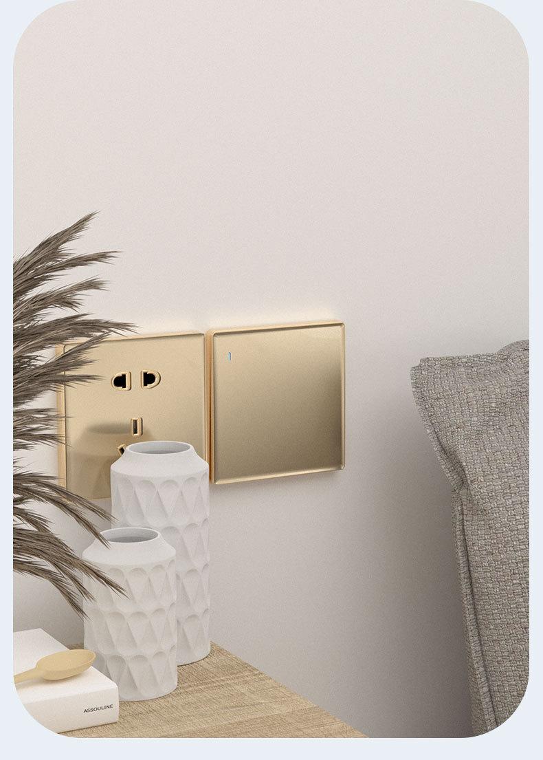 Interruptor de pared ultrafino azul de vidrio templado de un toque con doble control, 86 oculto, toma de pared de cinco orificios con dos enchufes de dos y tres clavijas, venta al por mayor