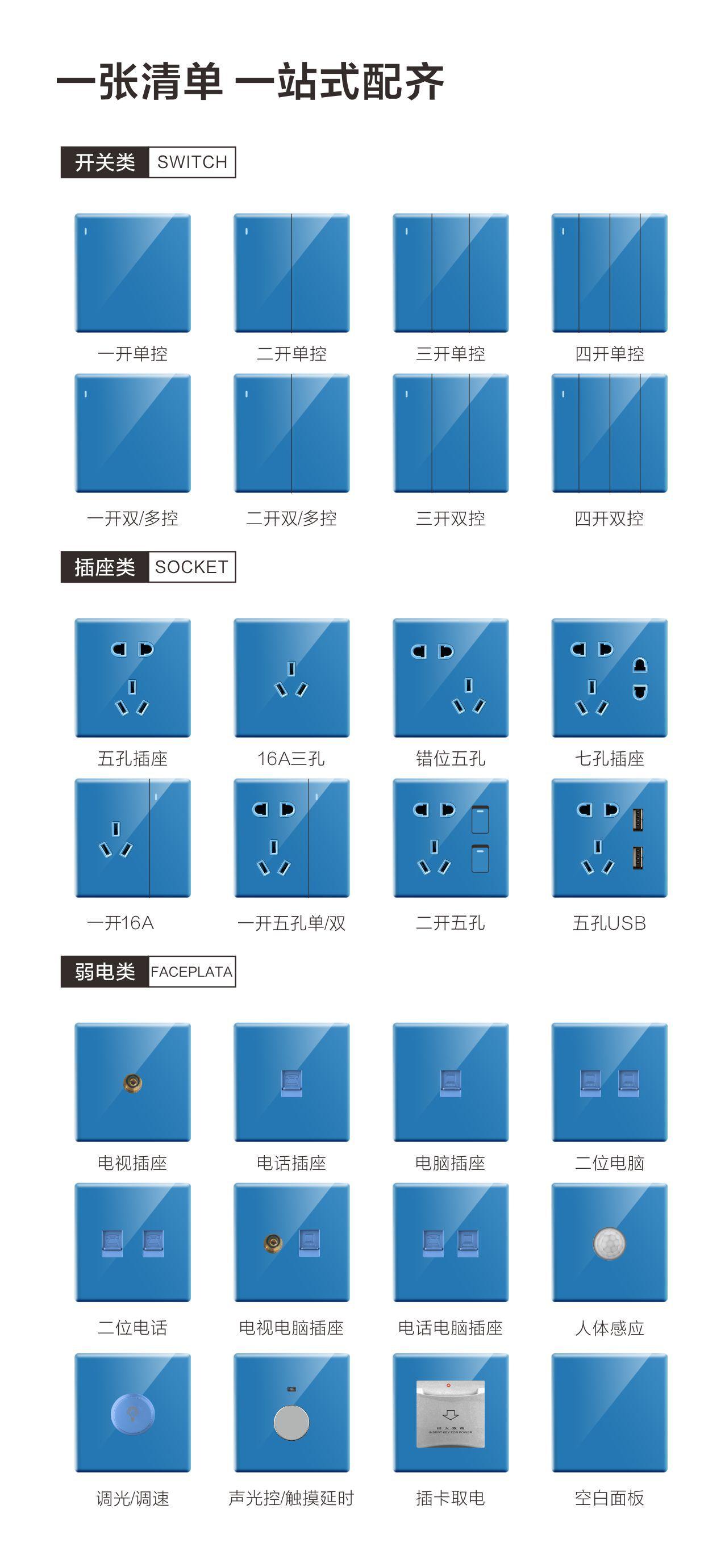 Blank Panel (Cover), A Billing Control Switch, One open double control switch, One open multi-control switch, ...