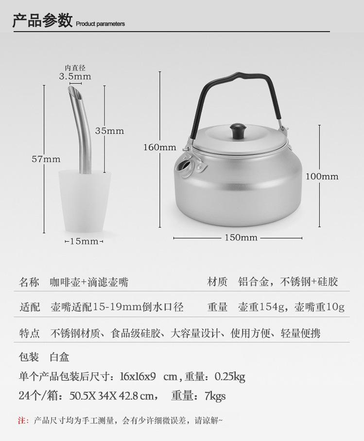 Hervidor de agua para acampar con filtro de goteo para café, cafetera portátil para exteriores, tetera ultraligera de aluminio para picnic