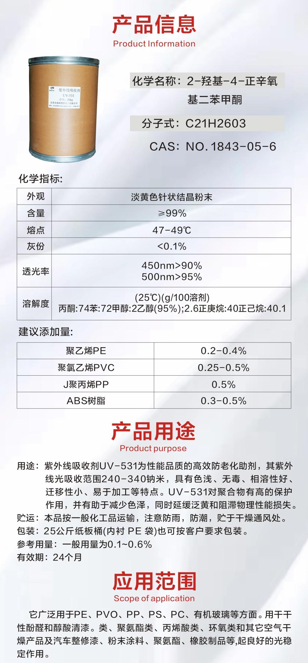 Absorbente UV Uv-531 Pintura Plástica Recubrimiento Antienvejecimiento Protector Solar Anti-Amarilleo Agente Estable Uv531