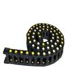 Las cadenas portacables de plástico de ingeniería tienen alturas internas de entre 10 y 80 mm y anchos de entre 10 y 350 mm, que se determinan según el tamaño y la cantidad de cables que se deseen proteger. La resistencia de la cadena portacables depende principalmente del contenido de nailon de la materia prima. Por lo tanto, las cadenas portacables de plástico de ingeniería se dividen en cadenas portacables de plástico de ingeniería comunes y cadenas portacables de plástico de ingeniería mejoradas.