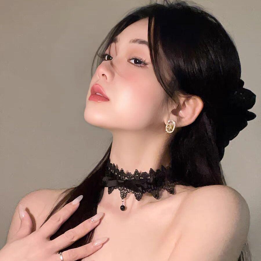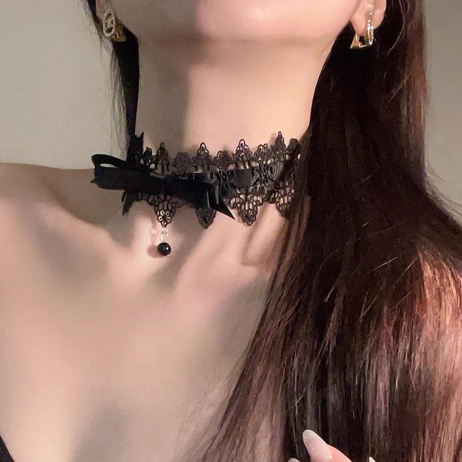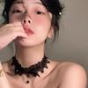 Collar negro para mujer, correa para el cuello, encaje ascético, accesorios de Halloween, maquillaje, joyería para el cuello, gargantilla de cadena para clavícula