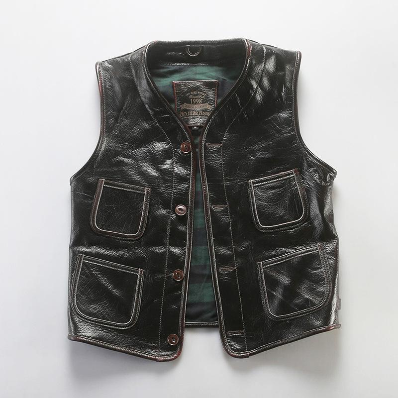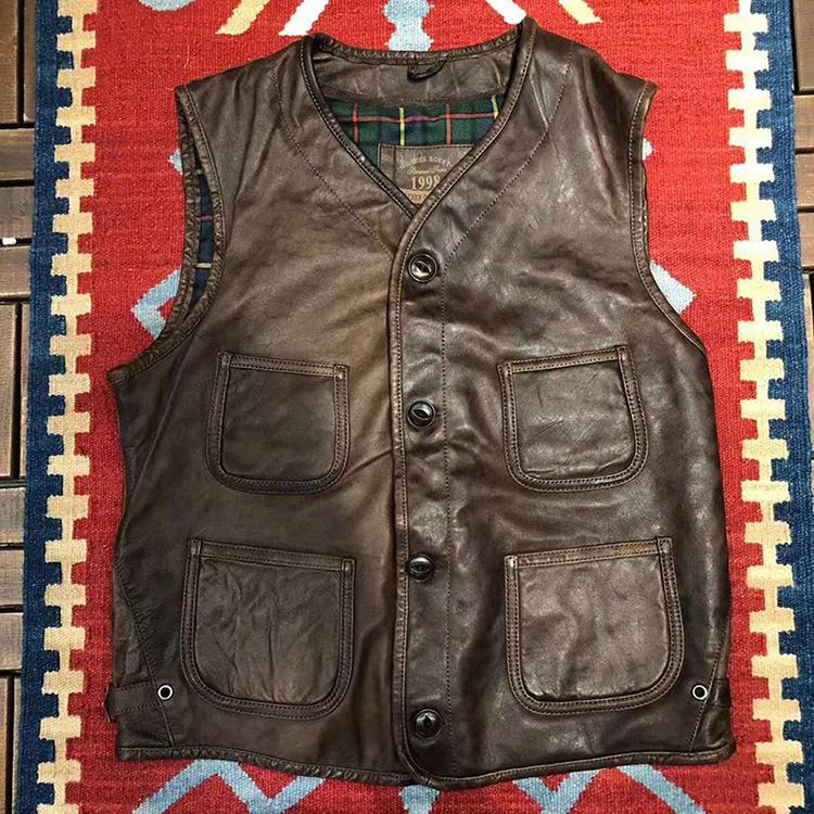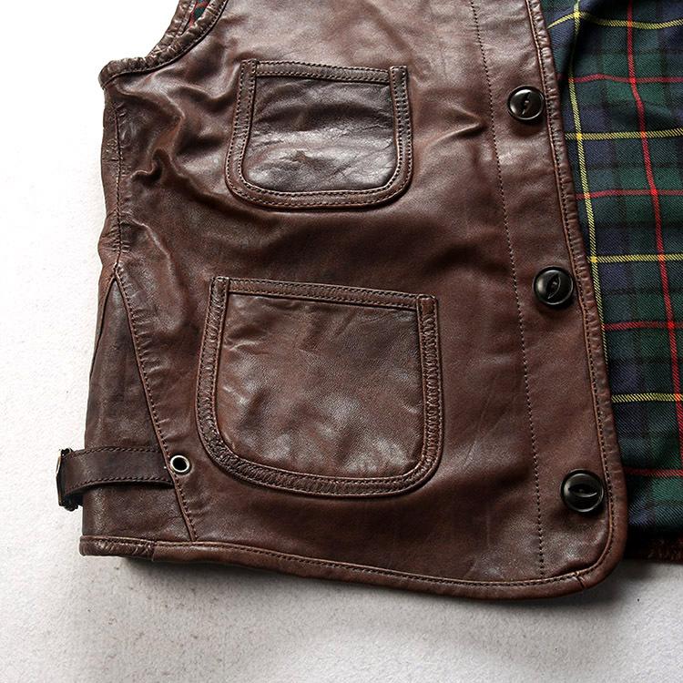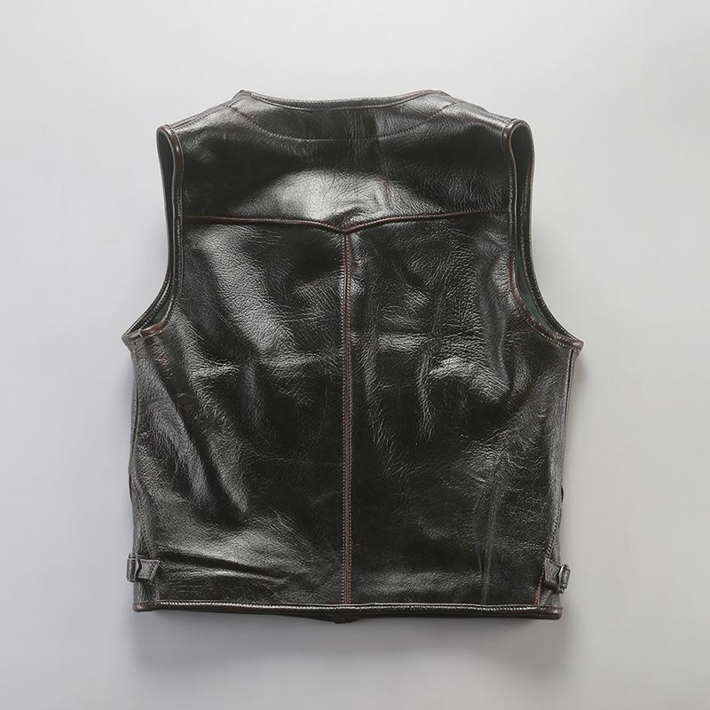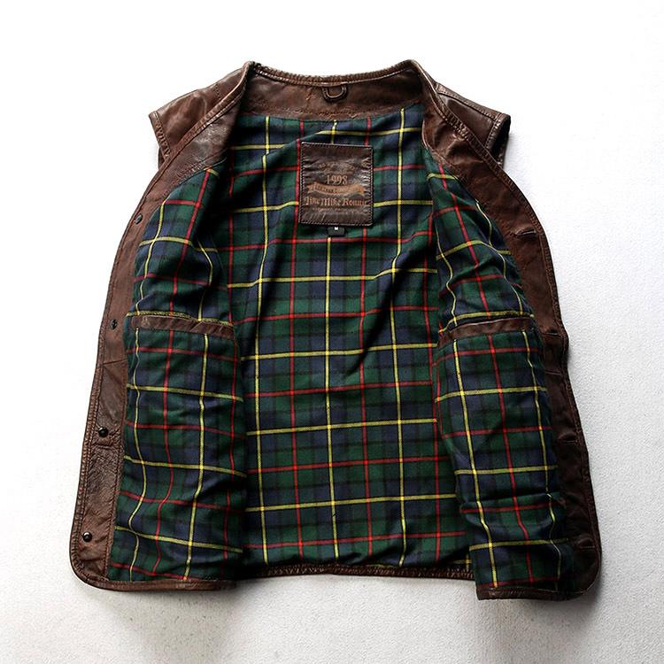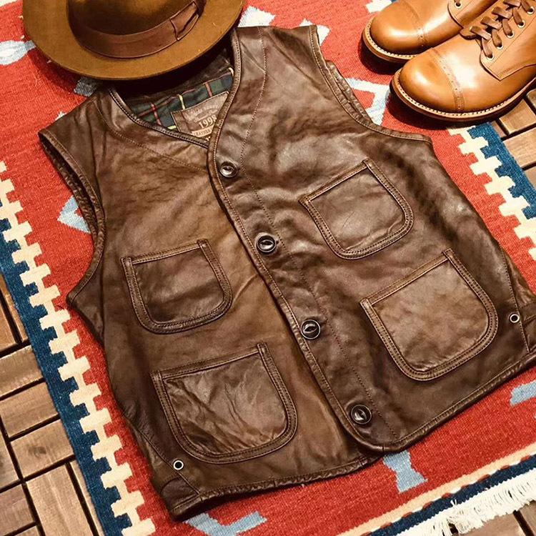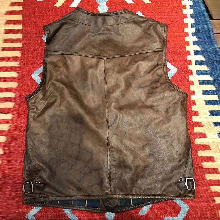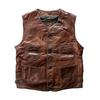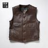 Verano Nuevo Chaleco Casual de Cuero para Motociclista para Hombre y Mujer Suministro Directo de Fábrica Chaleco Retro de Piel de Vaca Marrón