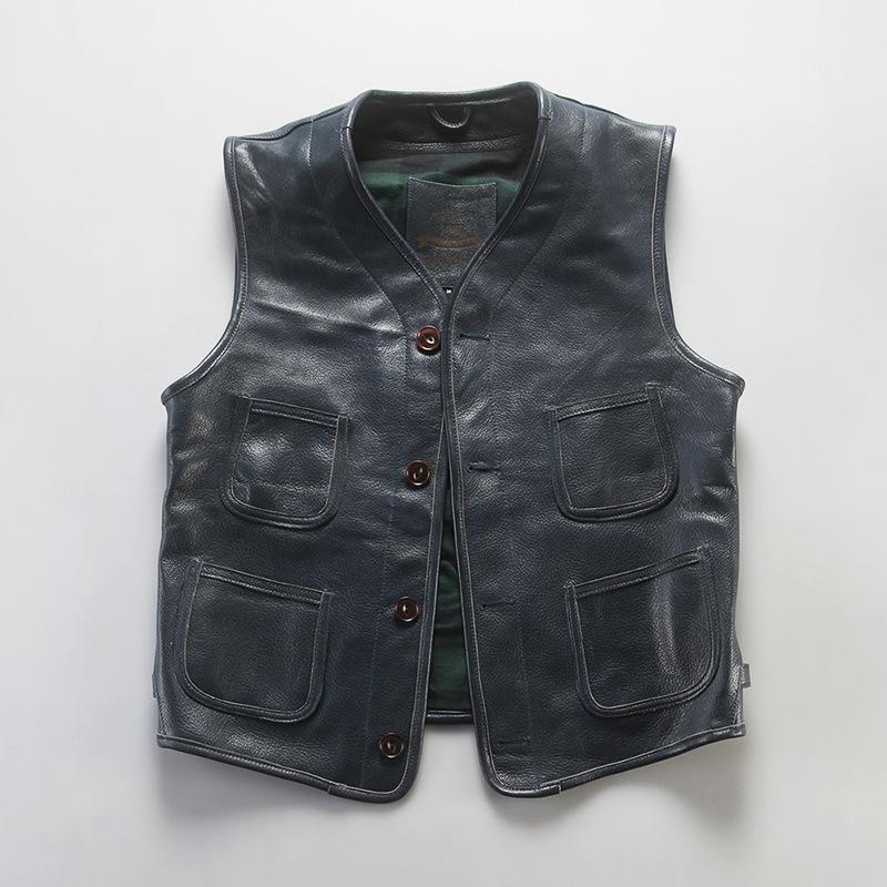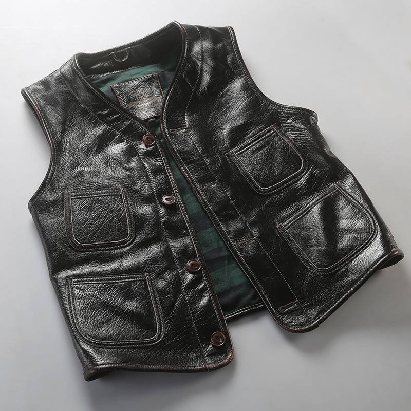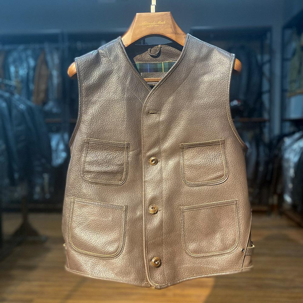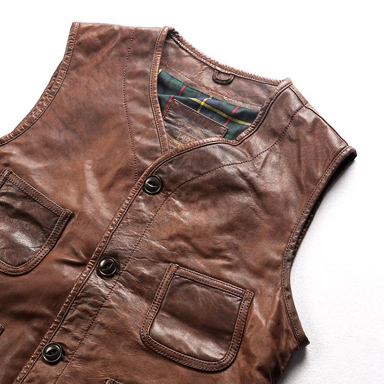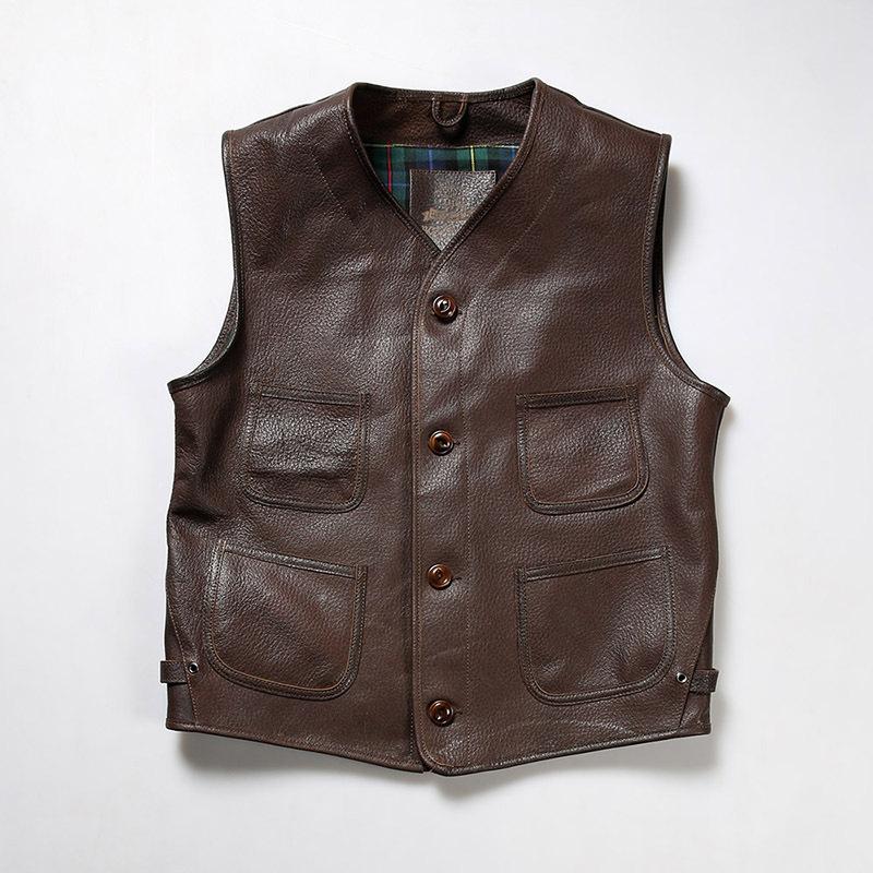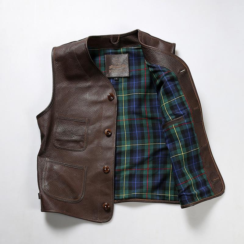 Verano Nuevo Chaleco Casual de Cuero para Motociclista para Hombre y Mujer Suministro Directo de Fábrica Chaleco Retro de Piel de Vaca Marrón