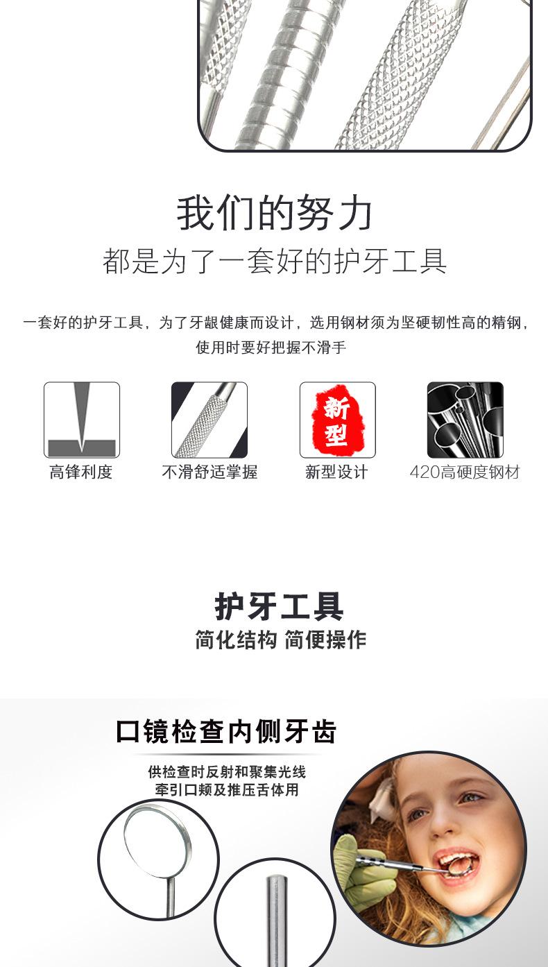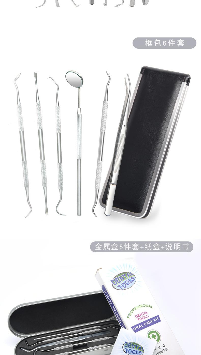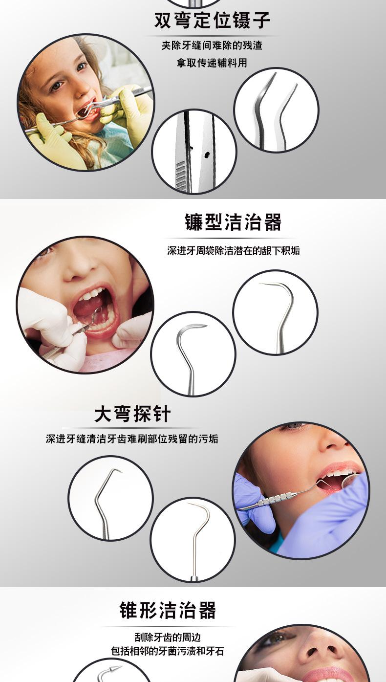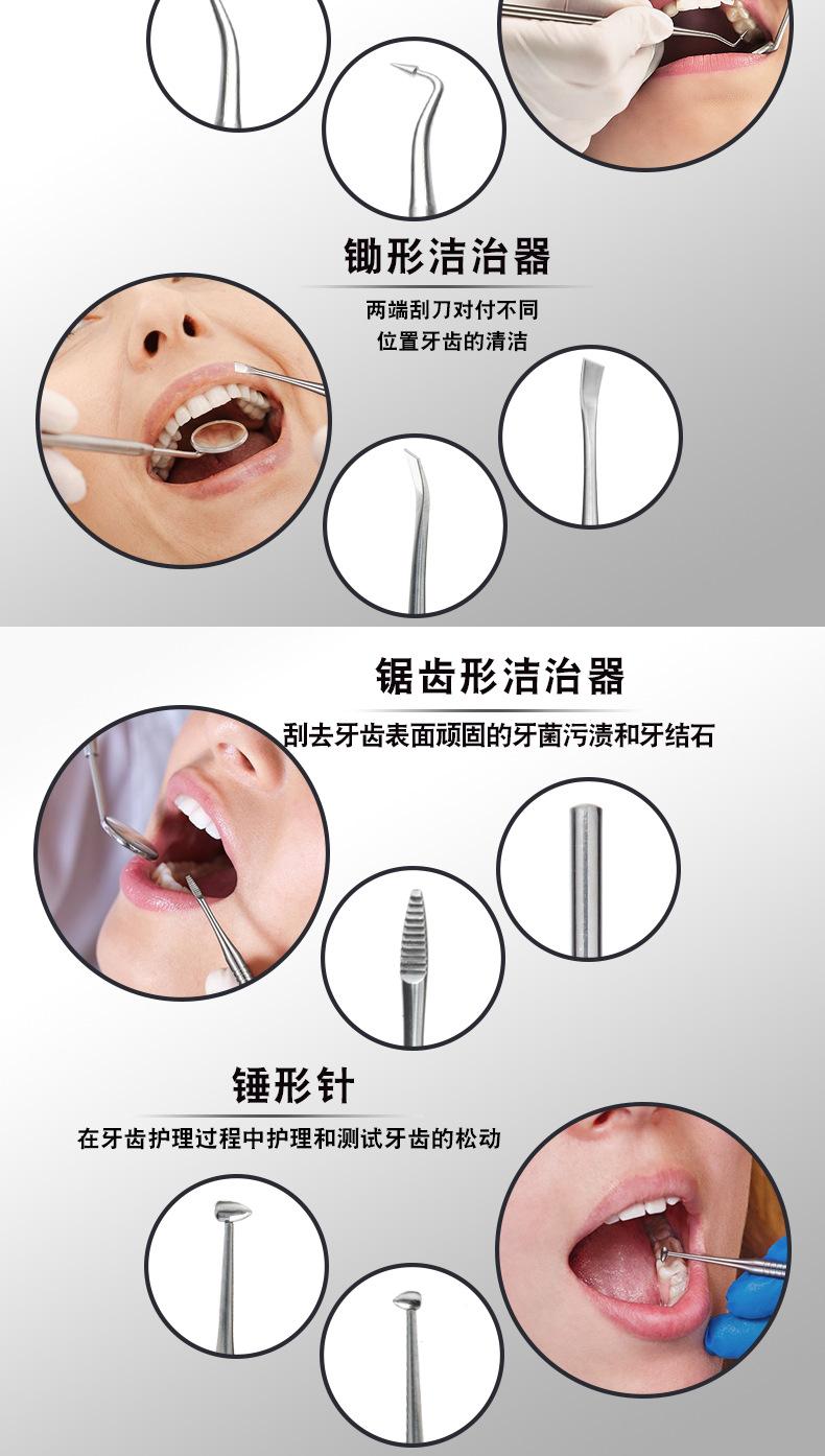 Mouth mirror (removable head), Big Bend Probe 1, Big Bend Probe 2, Seven-word probe, Sickle Cleaner 1, Sickle ...