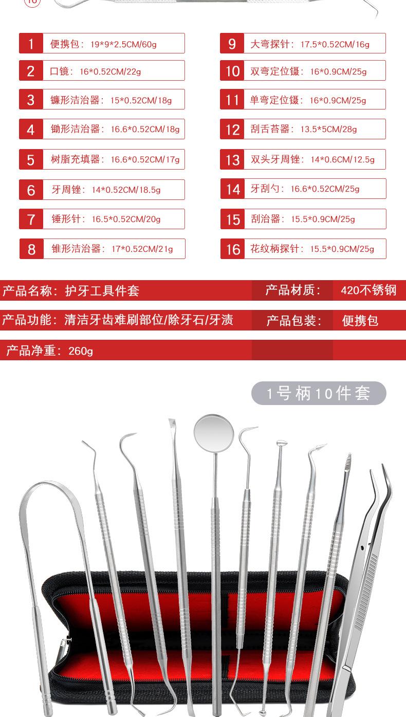 Herramientas dentales al por mayor de fábrica, 10 piezas, raspador de acero inoxidable, sonda para el cuidado dental, juego de herramientas para dentista