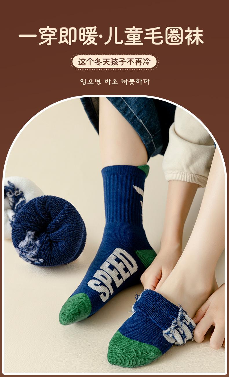 Calcetines para niños de algodón de clase A, de invierno, gruesos y cálidos, de felpa, hasta media pantorrilla, para niños medianos y grandes, con dibujos animados, para estudiantes, de otoño e invierno.