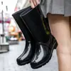 Botas de lluvia impermeables de invierno con forro polar, antideslizantes, gruesas y de tubo medio, para mujer, de nuevo estilo
