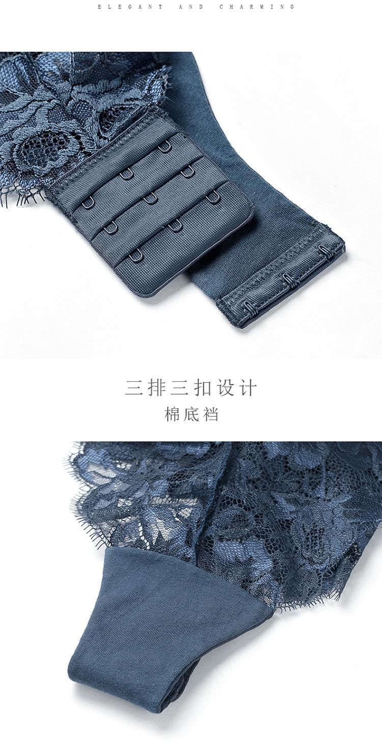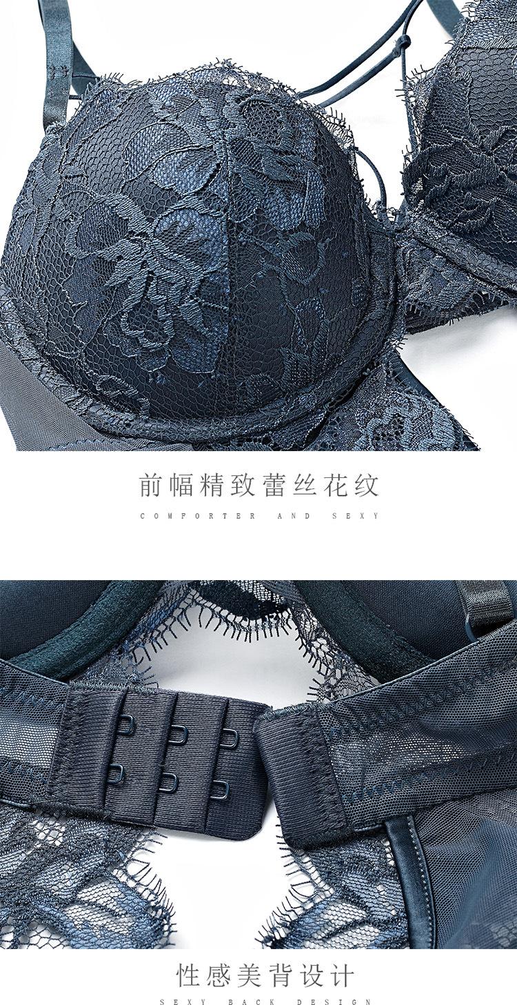 Conjunto de sujetador de encaje sexy para mujer, ropa interior con push-up, fino, gris, talla grande