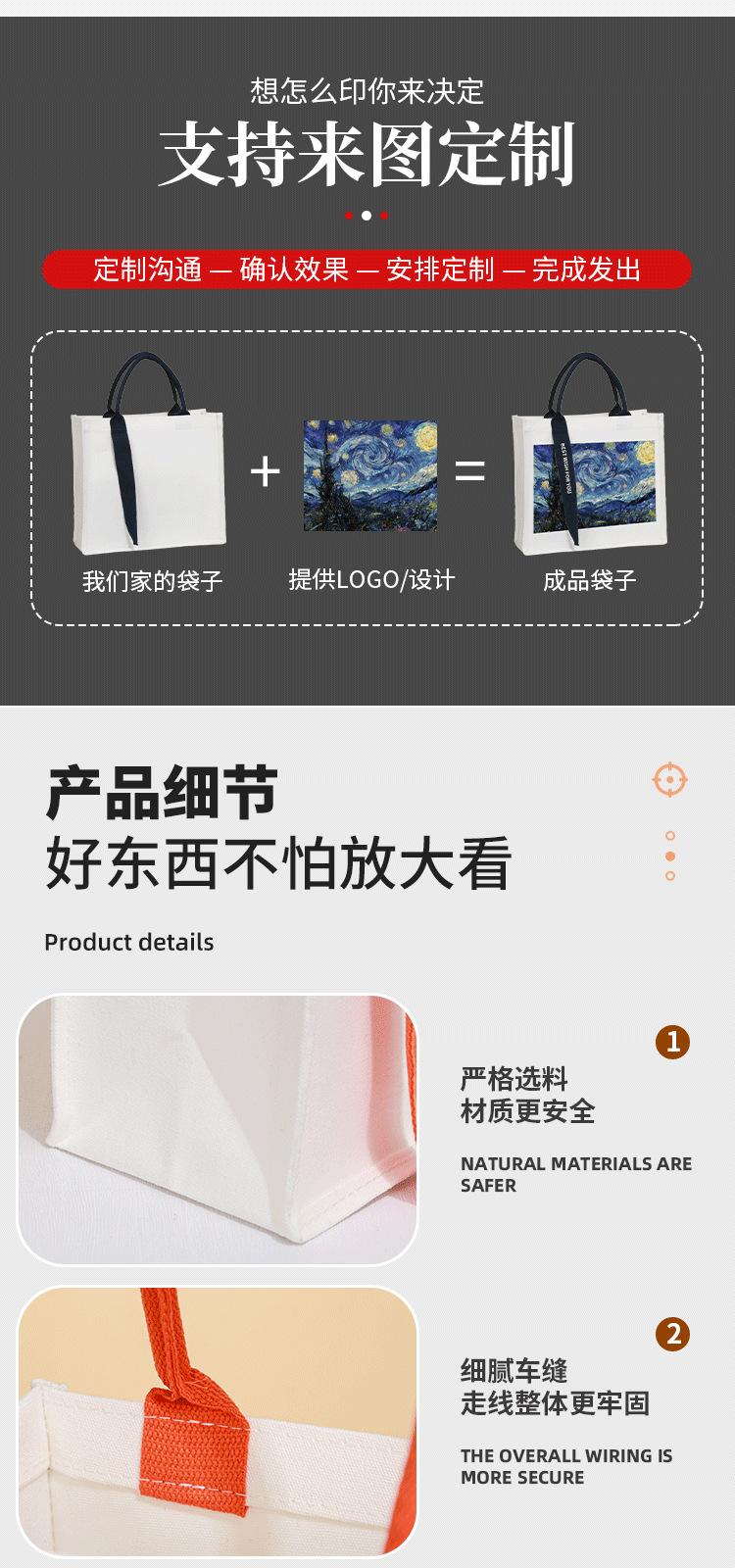 Bolsa de Lona Portátil Personalizada Bolsa Tote Bolsa de Algodón Recubierto Gran Capacidad Bolsa de Lona Estampada Bolsa de Almacenamiento Estampado Personalizado