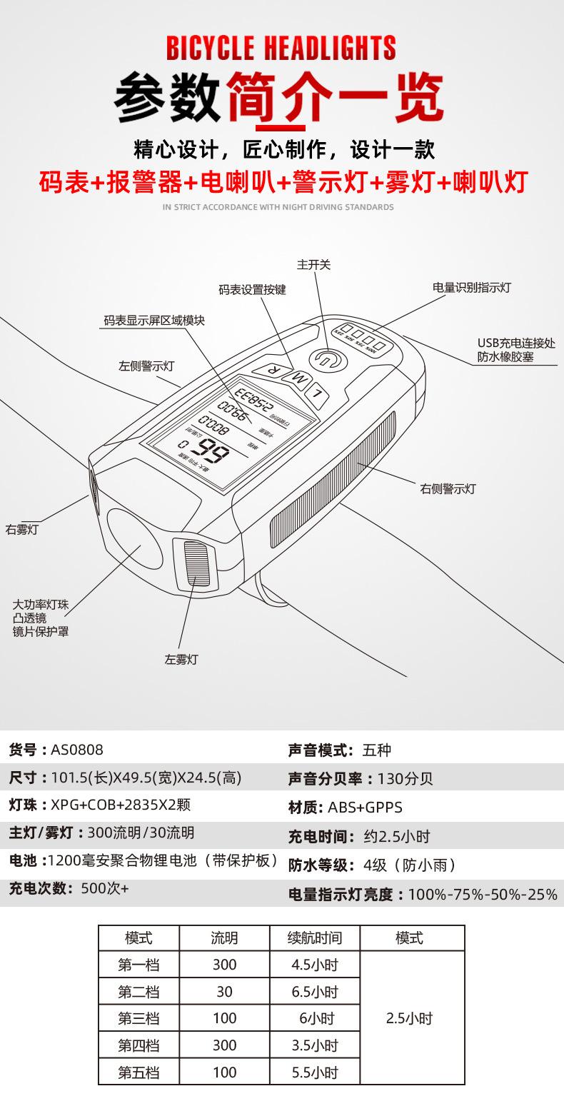 Luz principal/luz antiniebla: 300 lúmenes/30 lúmenes