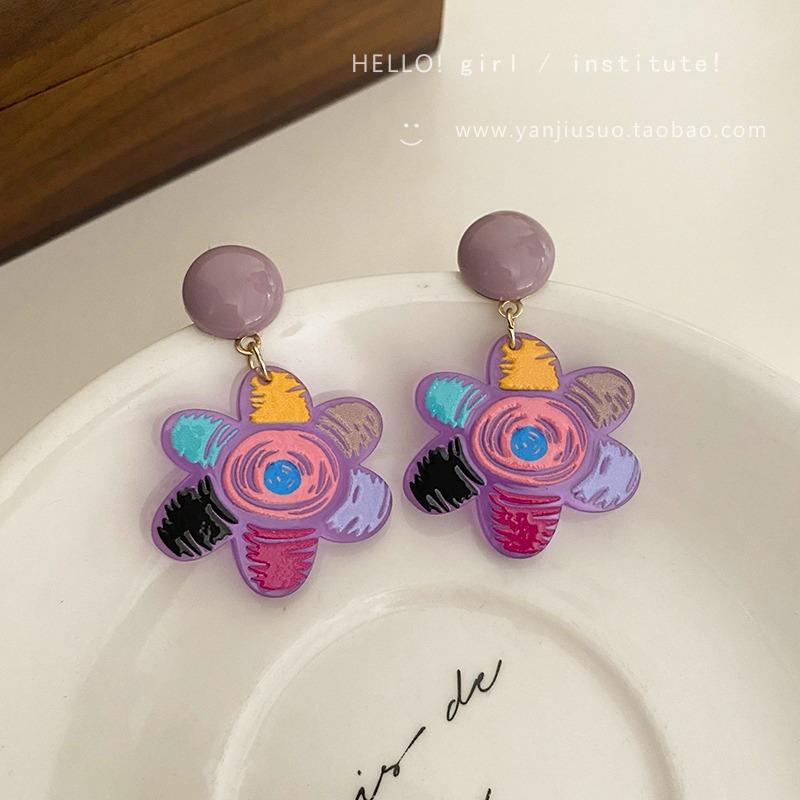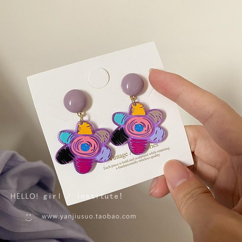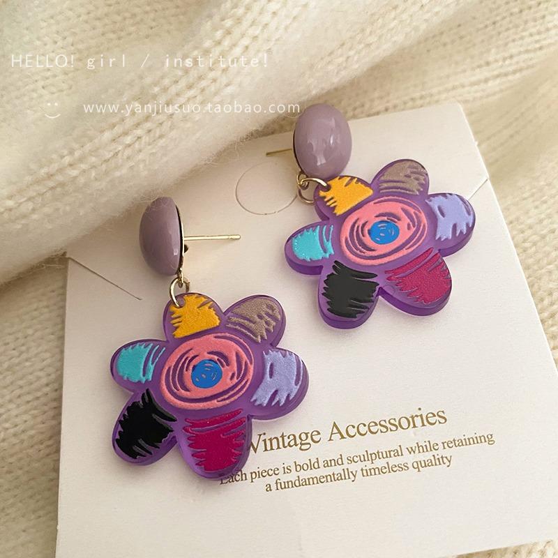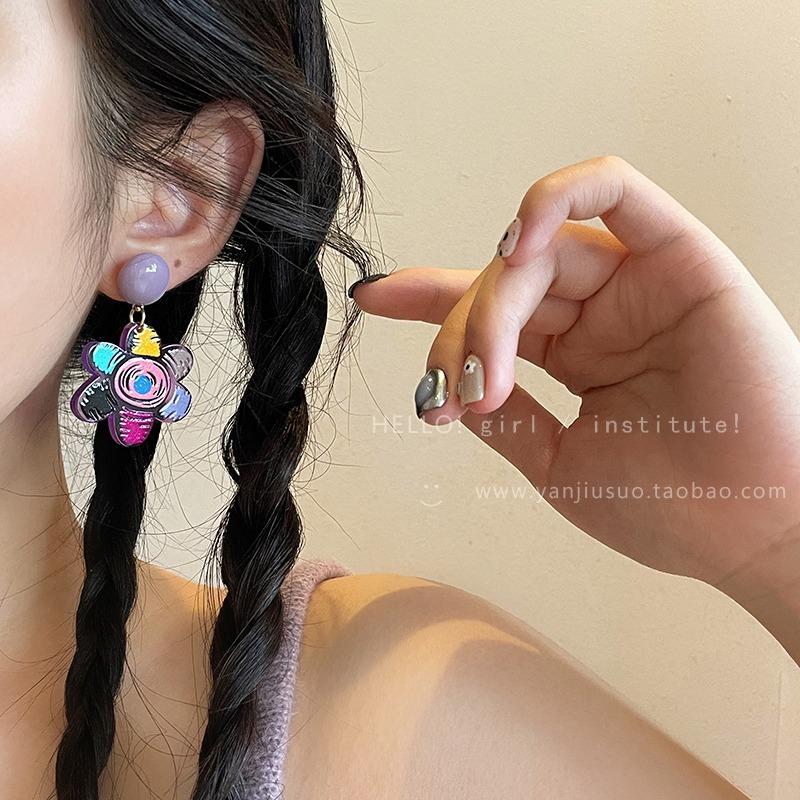 Aretes de Flores Graffiti de Color Contraste para Mujer Diseño de Verano Sentido del Diseño Pin de Oreja 2023 Nueva Moda Lindo Elegante Aretes de Flores