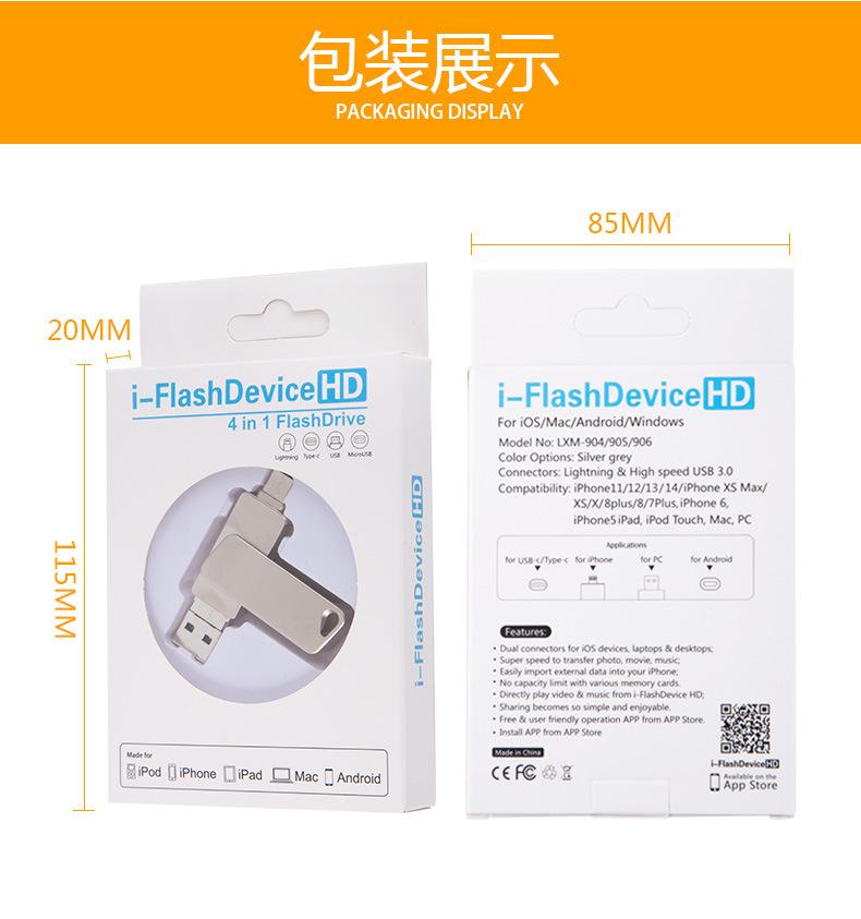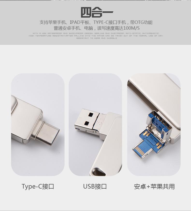 Disco flash USB para teléfono móvil cuatro en uno de 256 G para computadora Android tipo C de Apple, disco flash USB de alta velocidad y gran capacidad con interfaz dual
