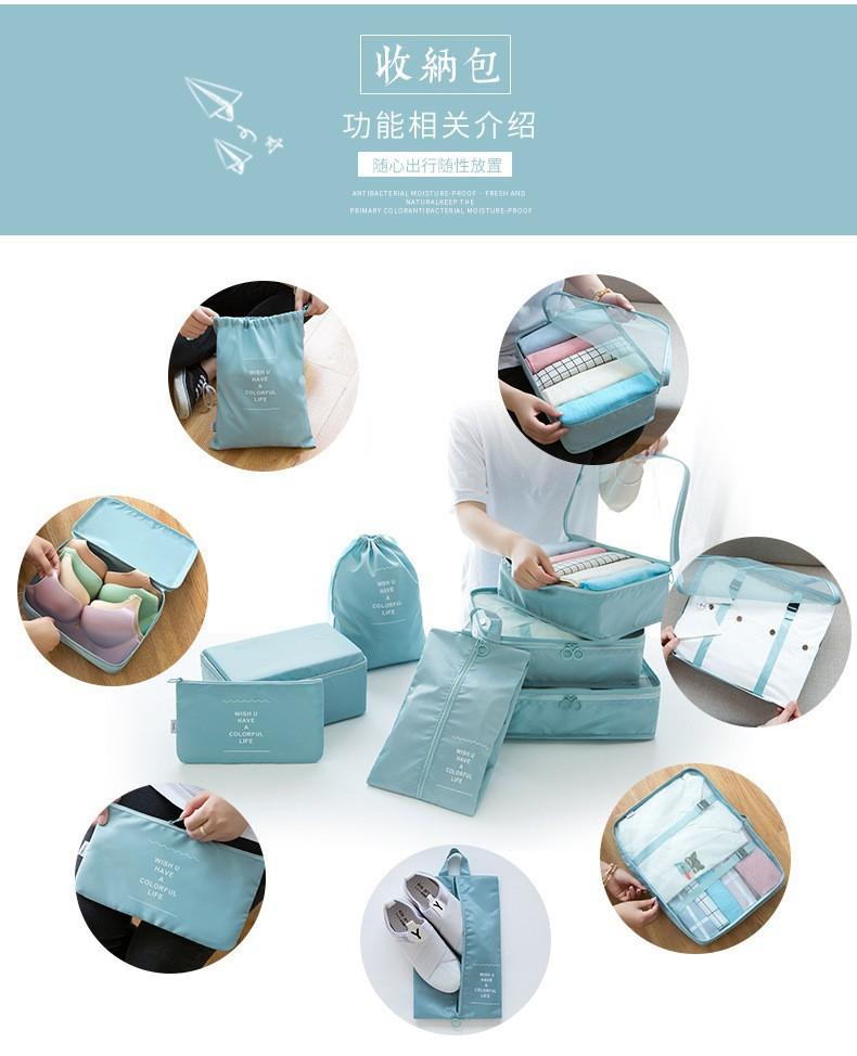 Amazon Twill Almacenamiento de Viaje Juego de Ocho Piezas Bolsa de Almacenamiento para Clasificación de Ropa de Viaje Organización de Maleta Viaje Portátil