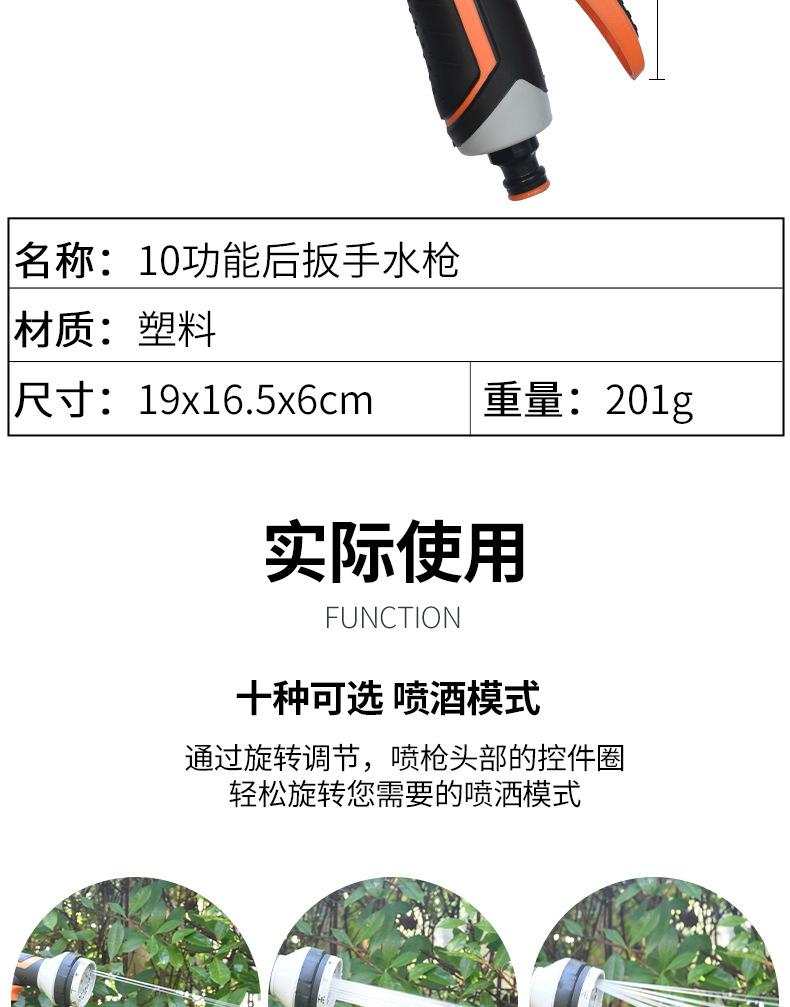 Boquilla de plástico para tubería de agua Green Bird, para riego de jardinería, transfronterizo, de alta presión, con 10 funciones, para riego de jardín y lavado de coches.
