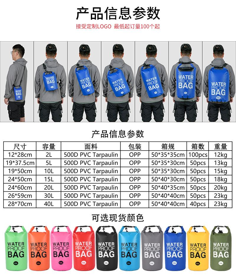 Deportes transfronterizos al aire libre suministros junto al mar materiales de buceo Bolsa de cubo impermeable de PVC para playa surf deriva natación bolsa impermeable