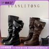 Otoño e Invierno plataforma de comercio exterior botas por encima de la rodilla para mujer transfronterizas elásticas tejidas voladoras de lana botas altas de punta redonda transpirables de una sola capa zapatos Amazon
