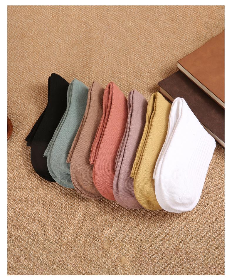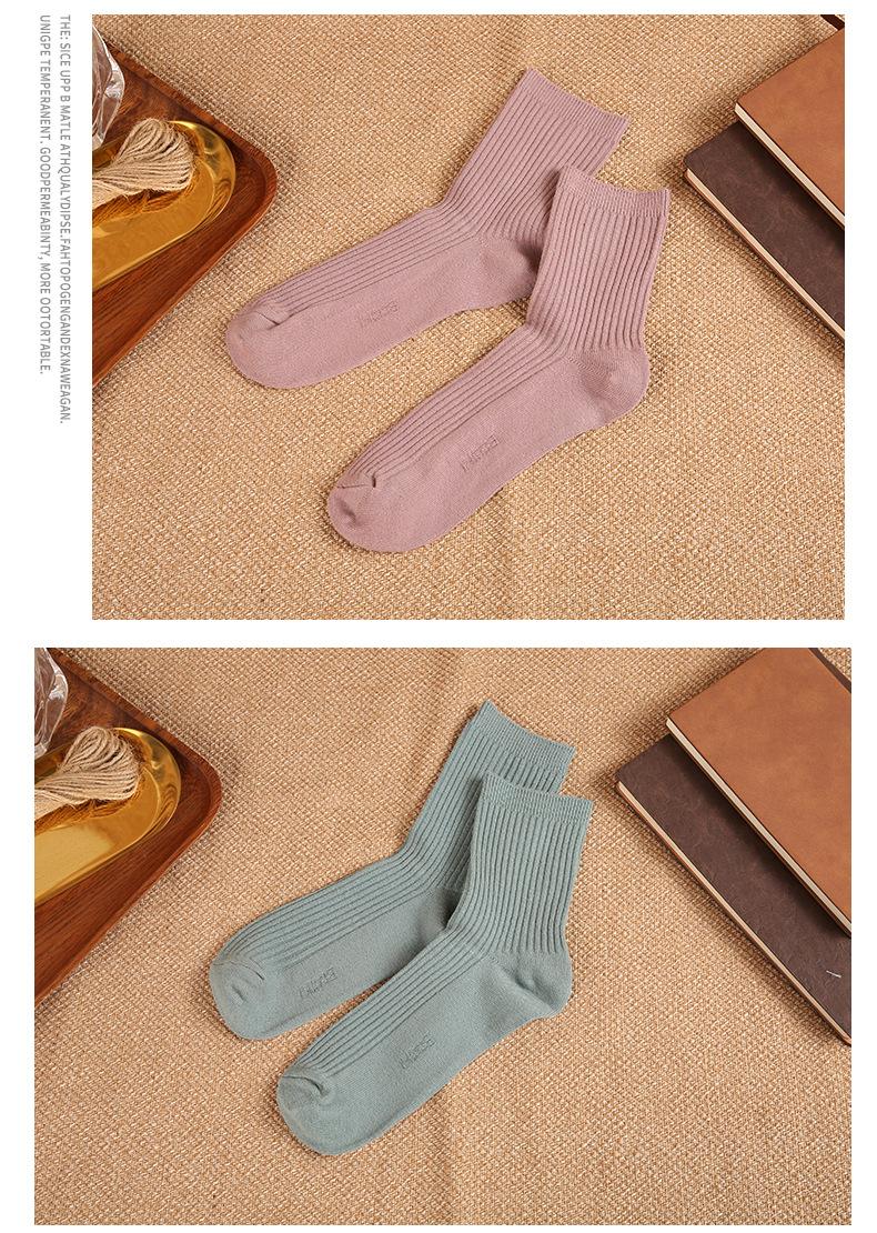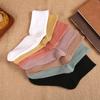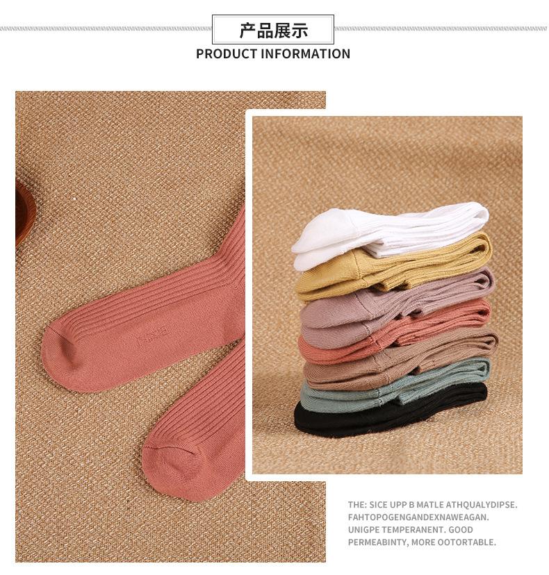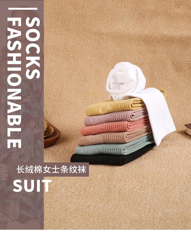 Calcetines deportivos informales de algodón a rayas de fibra larga para mujer, de color liso, hasta media pantorrilla, suaves y cómodos, que no se forman bolitas.