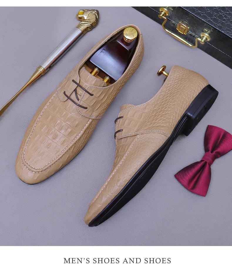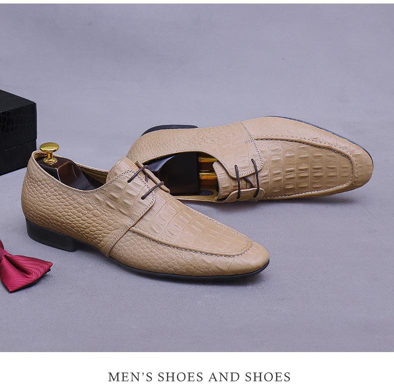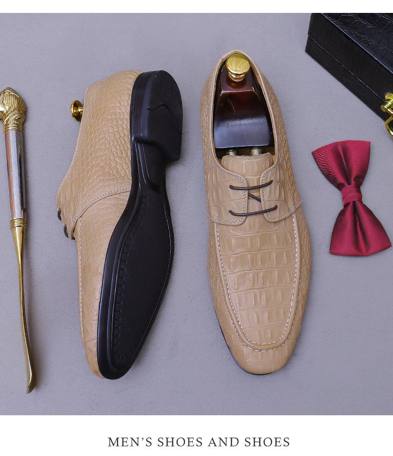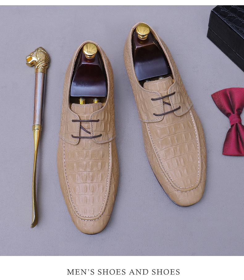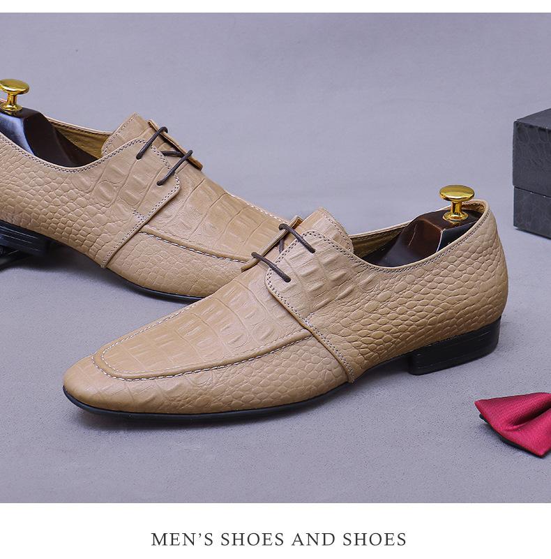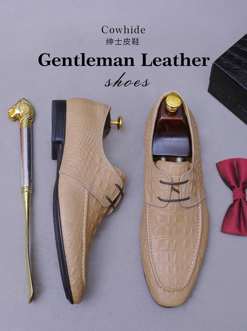 Zapatos de Piel Vacuna de Primera Capa Europea y Americana con Punta Redonda y Patrón de Cocodrilo para Hombre, Zapatos Derby de Cuero Genuino Modernos para Negocios Formales para Hombre
