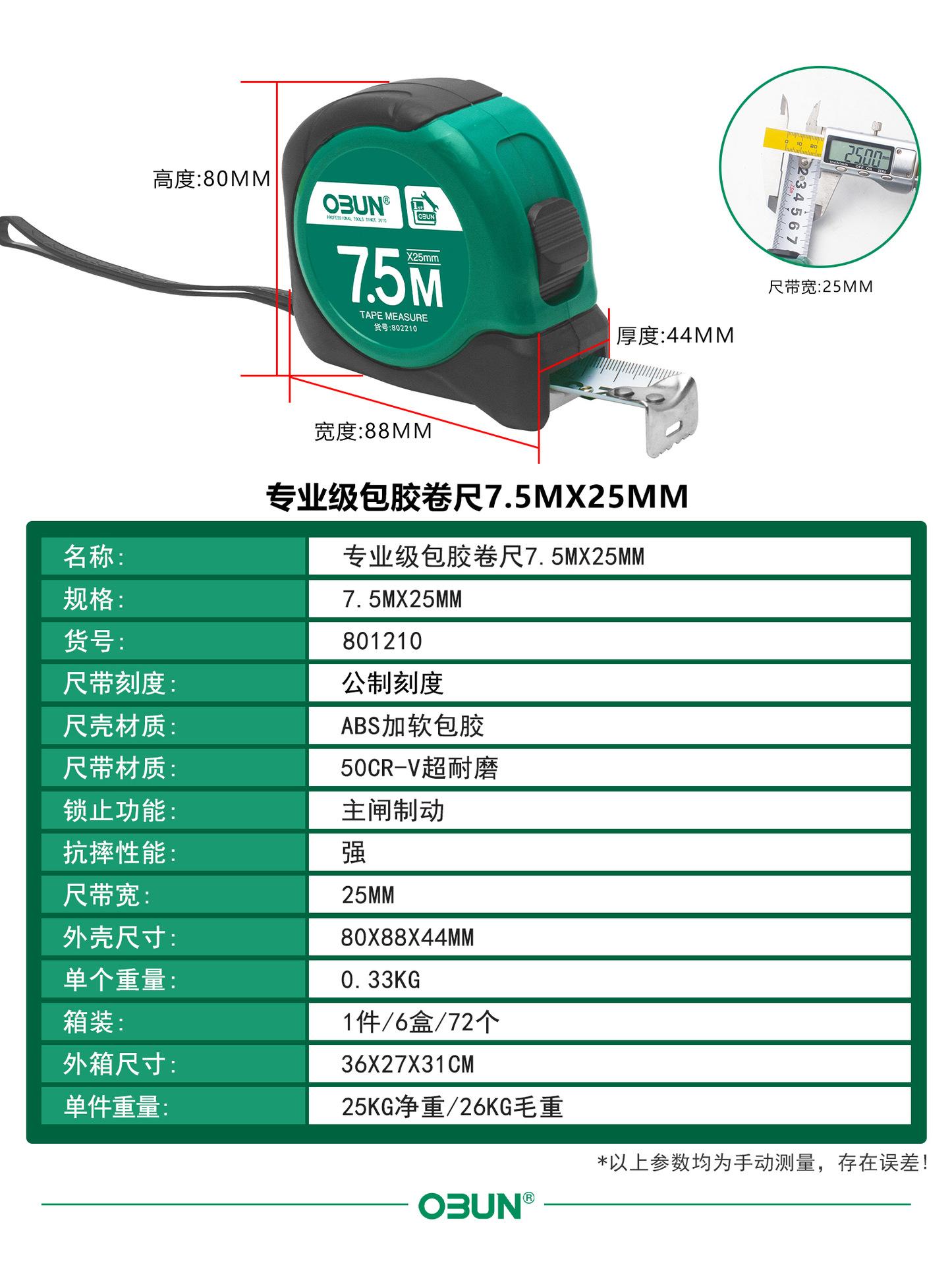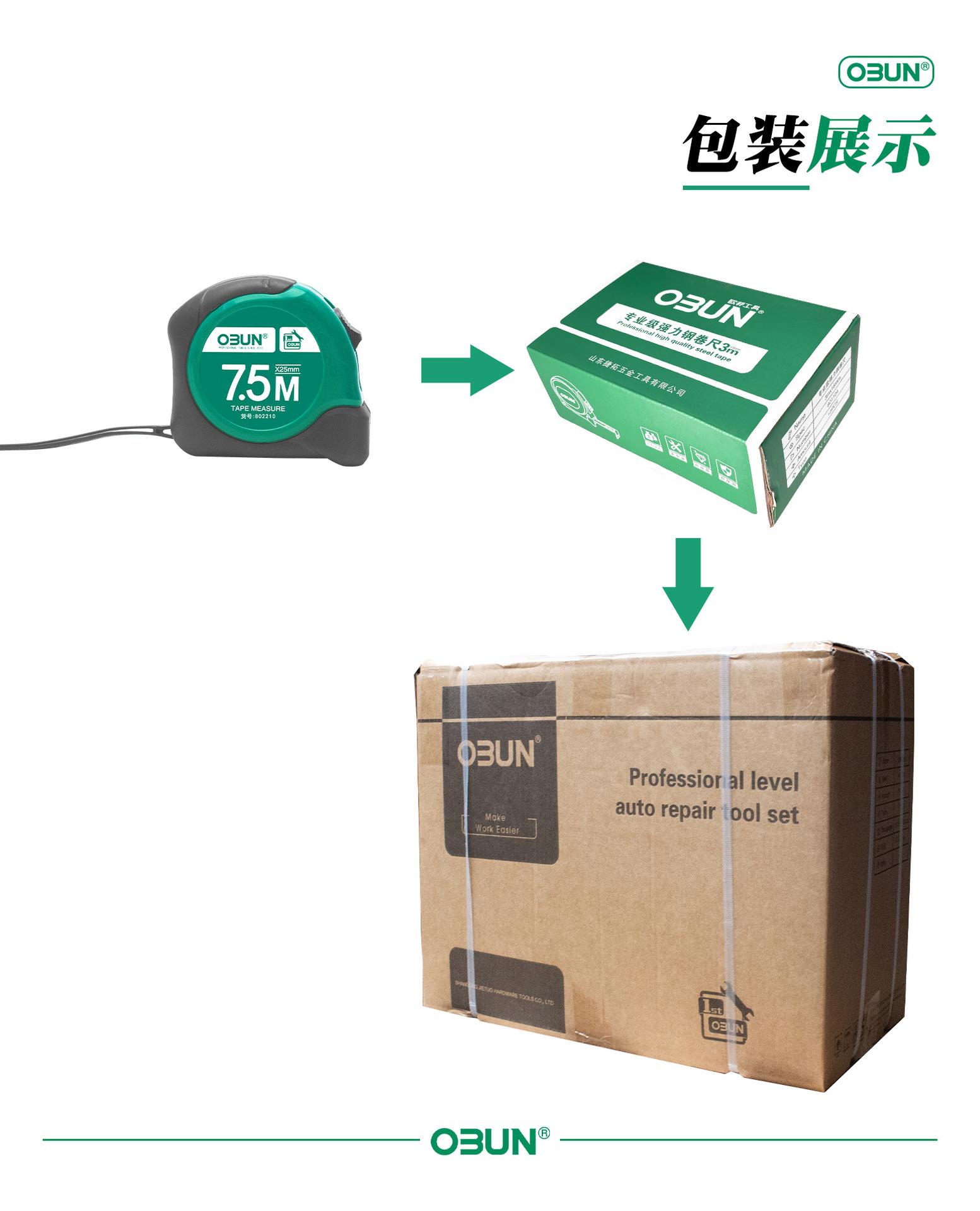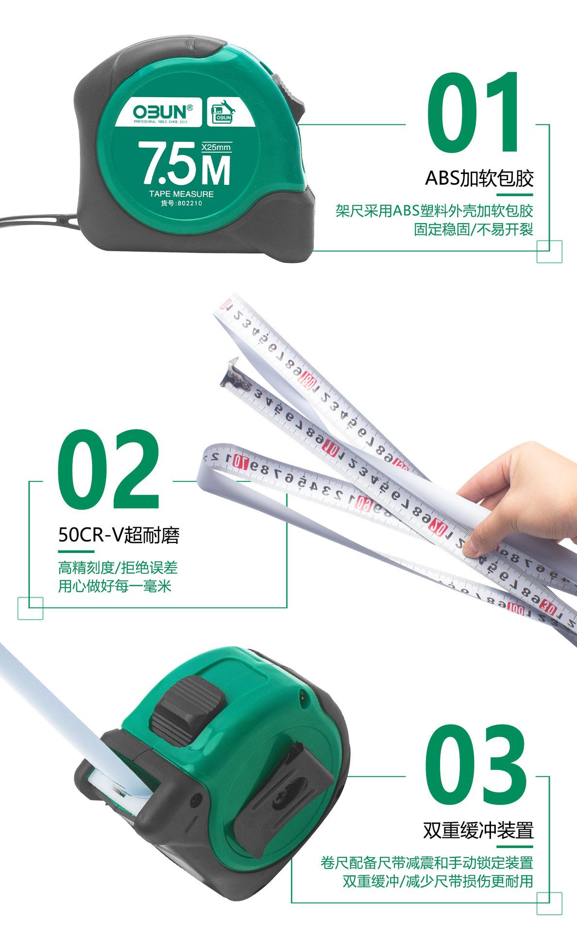 Cinta métrica de acero Oubang, regla de caja de 5 m, tira de lijado, regla de caja de 3 m, regla de 7,5 m, herramienta de medición manual de 10 m
