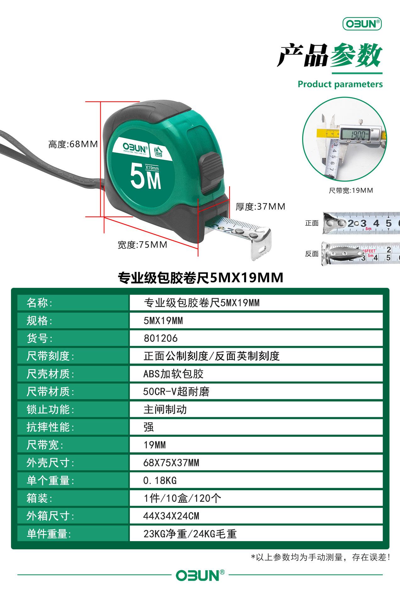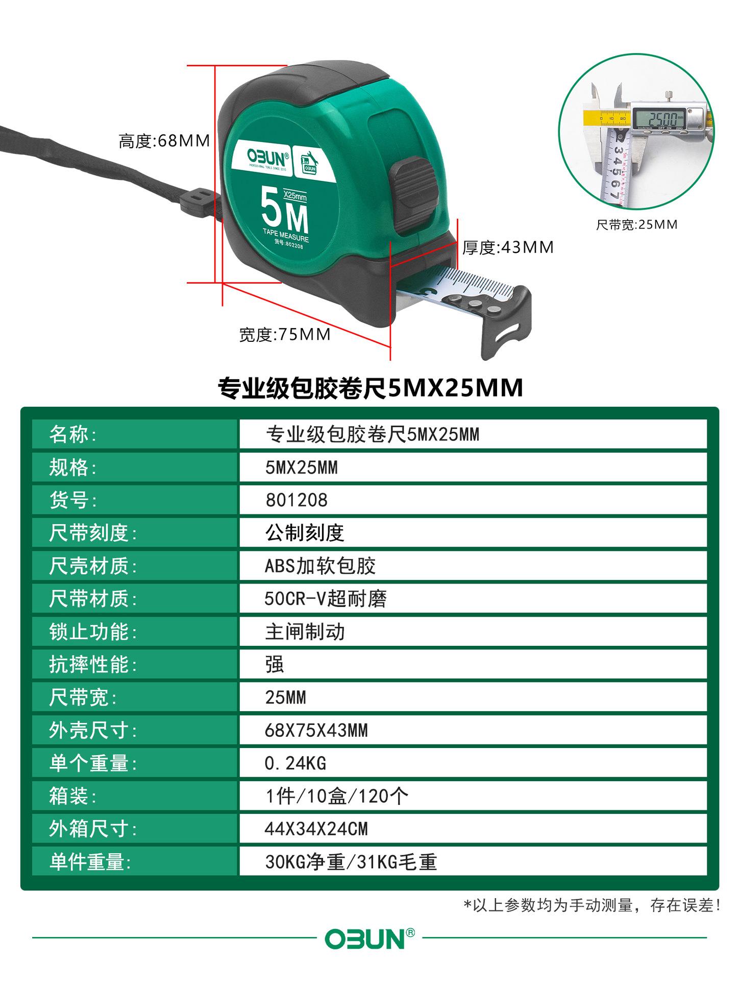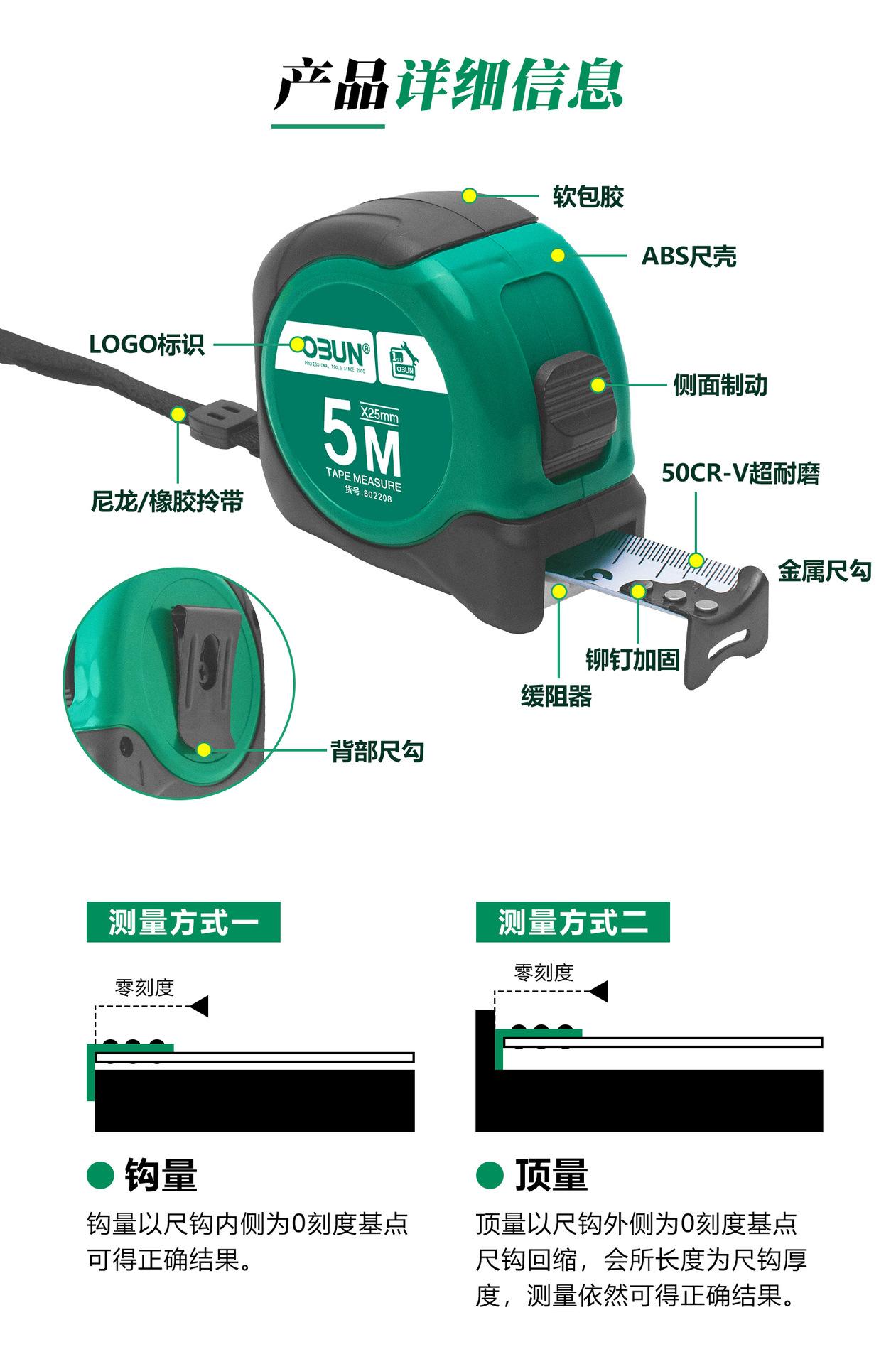 Cinta métrica de acero Oubang, regla de caja de 5 m, tira de lijado, regla de caja de 3 m, regla de 7,5 m, herramienta de medición manual de 10 m