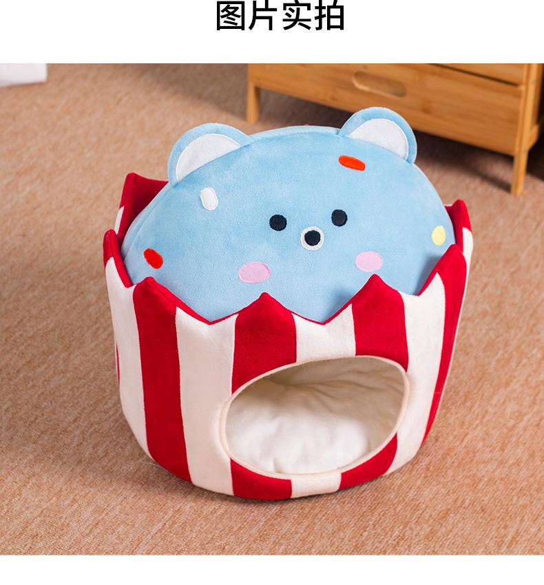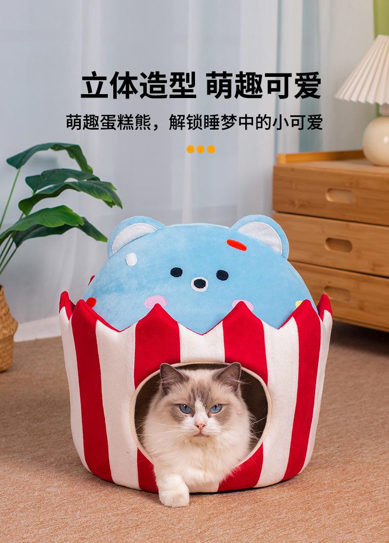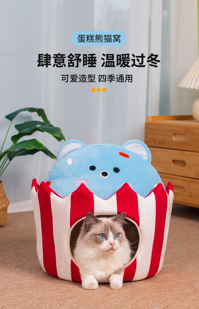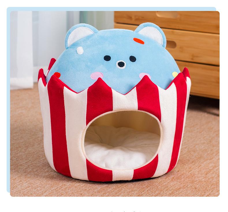 Nido de gato semicerrado con forma de oso de pastel cálido de invierno, cama para gato, perrera semicerrada, cama para perro, nido cerrado para gato