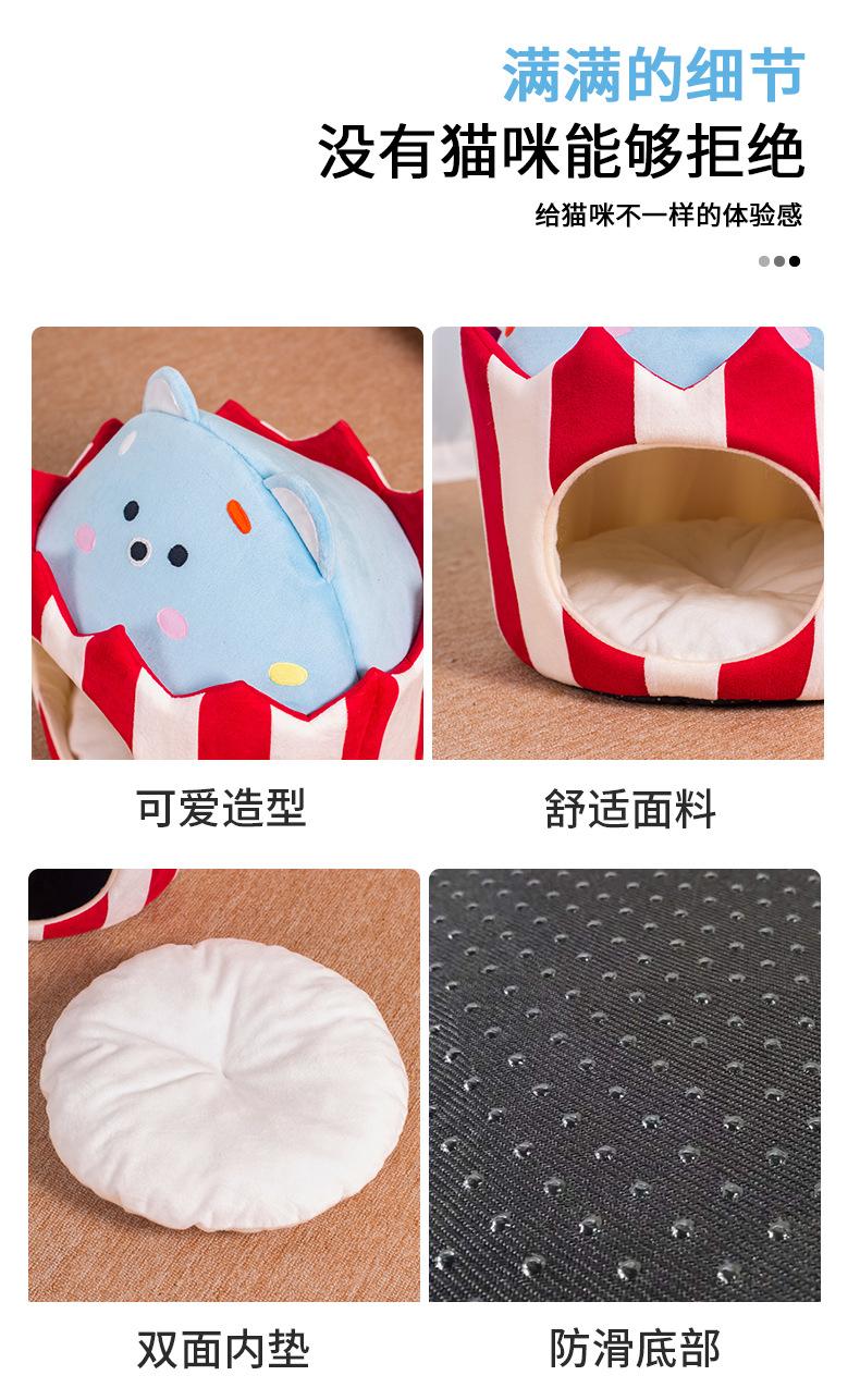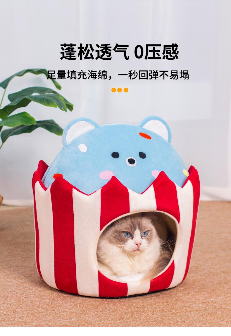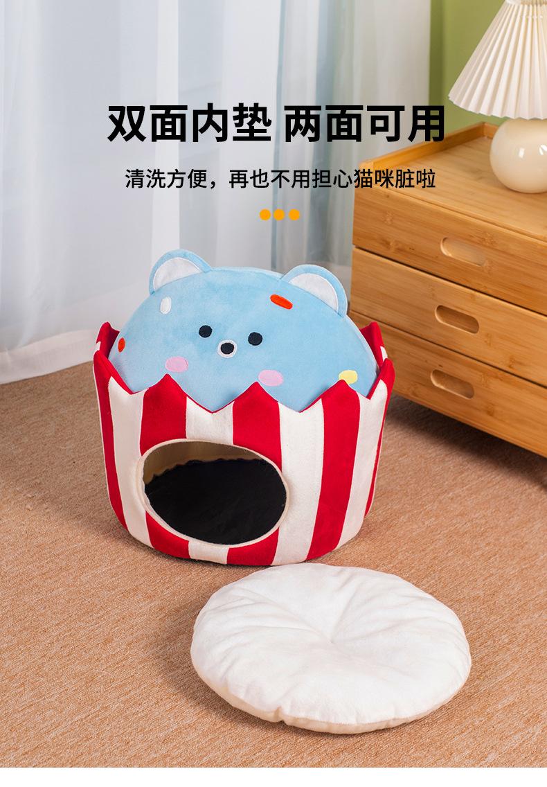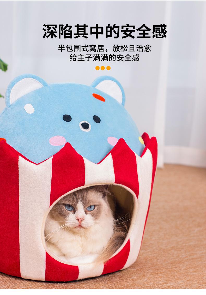 Nido de gato semicerrado con forma de oso de pastel cálido de invierno, cama para gato, perrera semicerrada, cama para perro, nido cerrado para gato