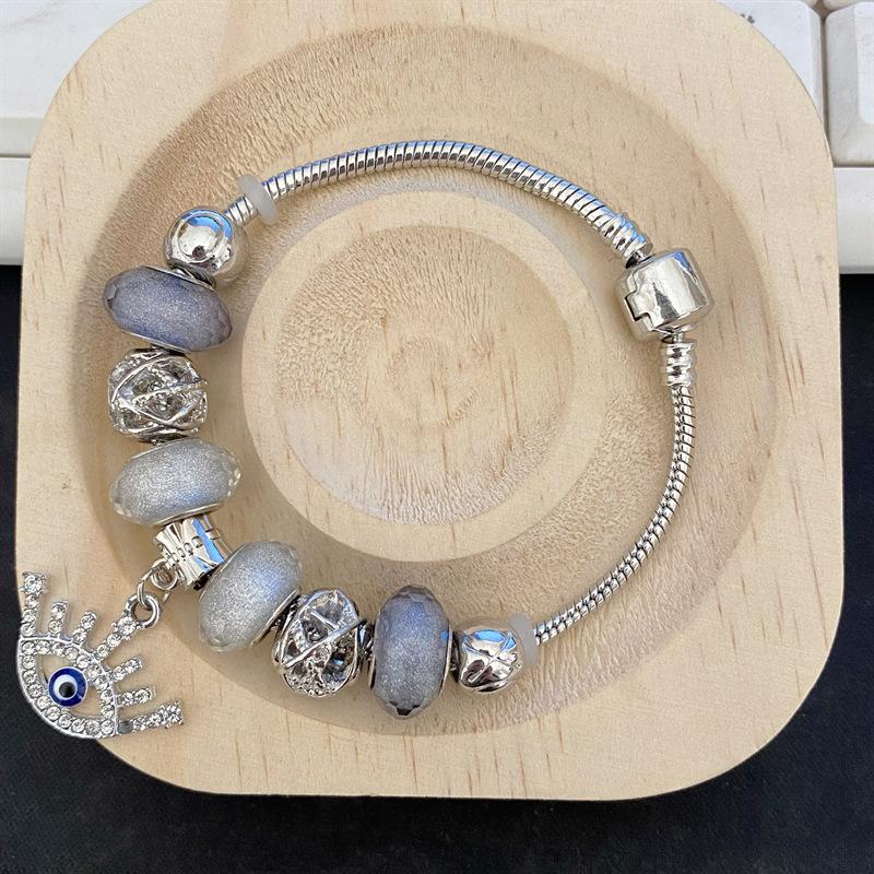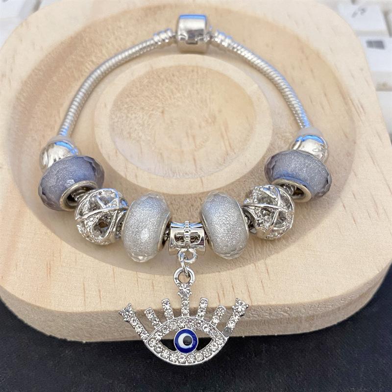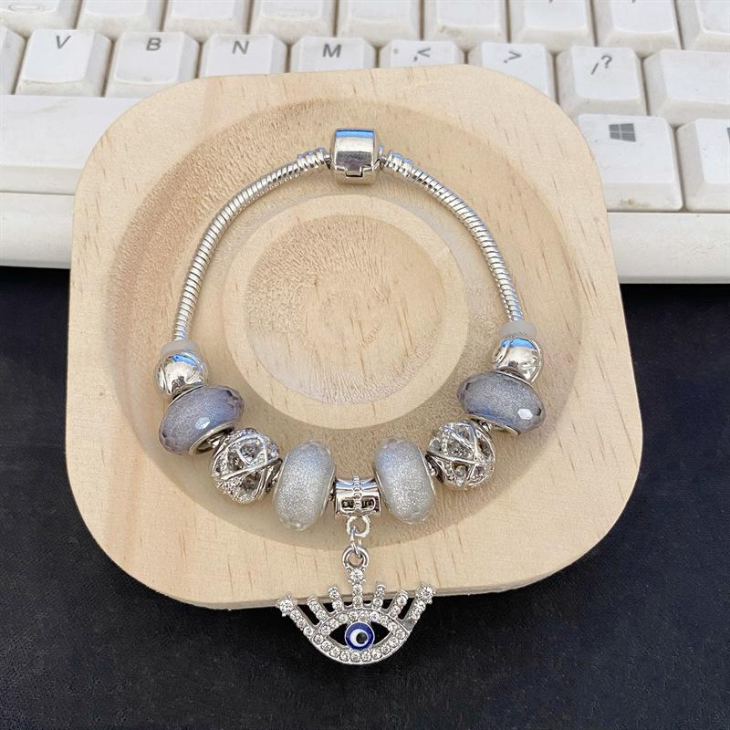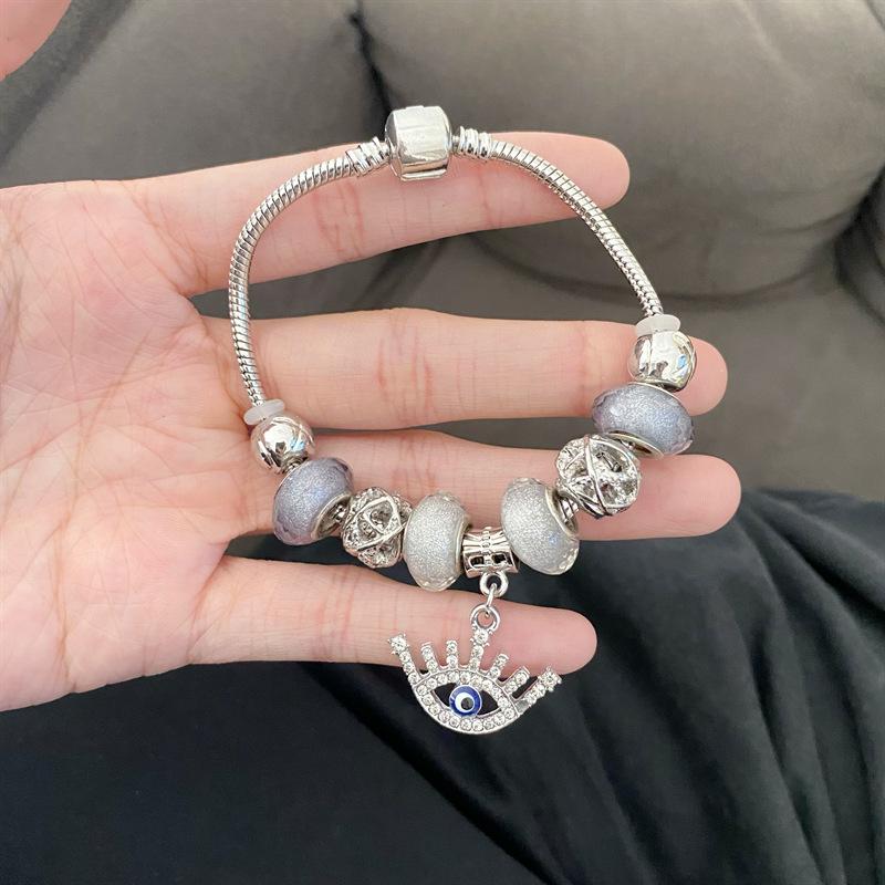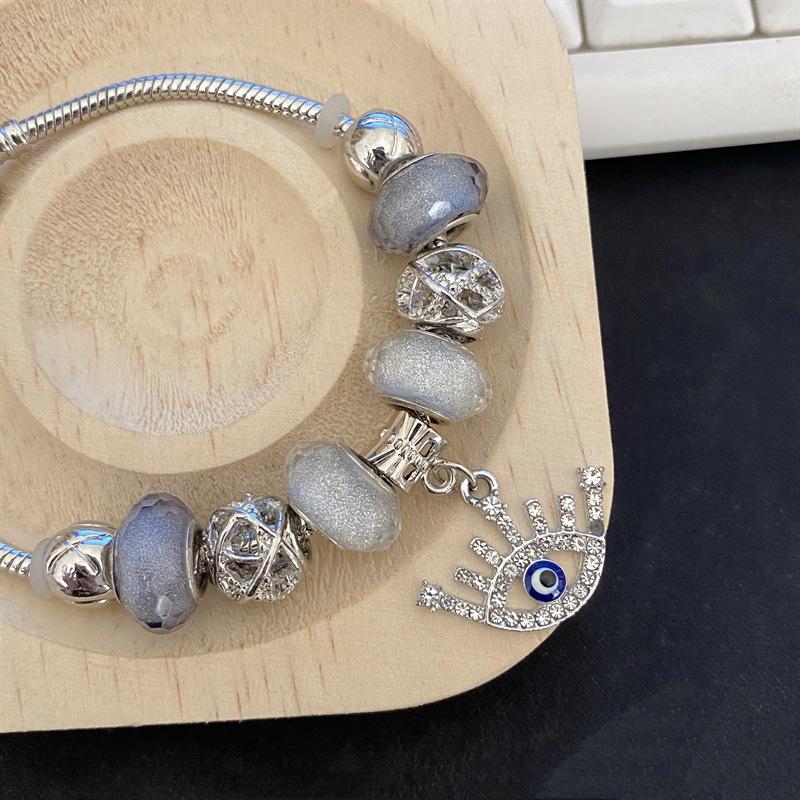 Pulsera de cuentas huecas de ojo de diablo estilo Panjia, pulsera de novia sencilla y combinable, pulsera para novia