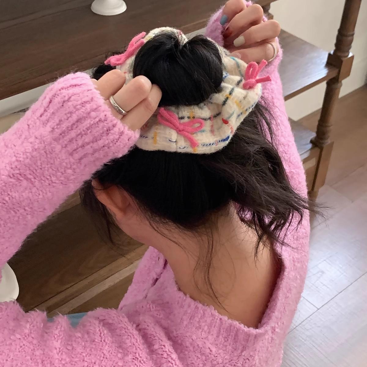 Zhao Lusi, mismo estilo, banda para el cabello de encaje de intestino grueso, cuerda para el cabello blanca lechosa de alta calidad retro francesa para mujer, accesorios para el cabello de cuerda grande para el cabello