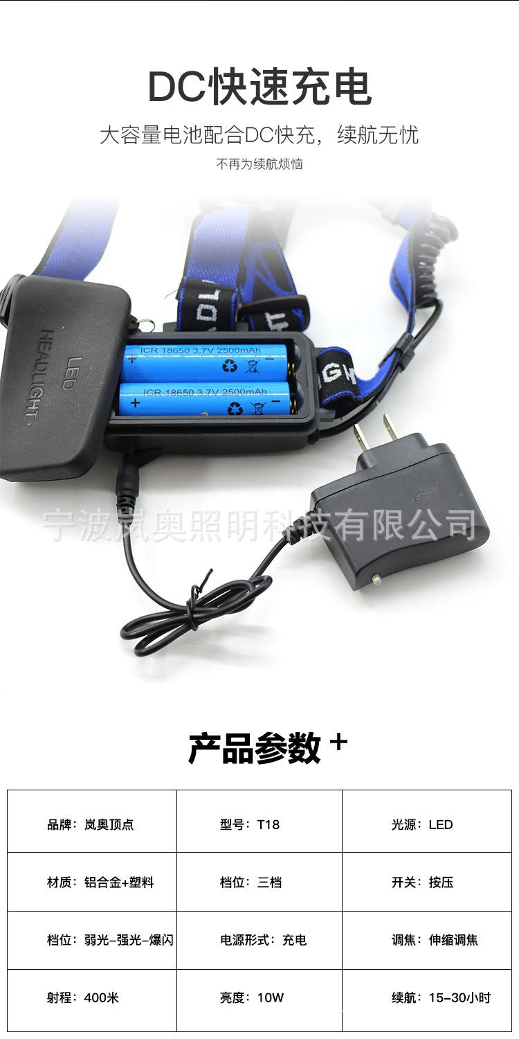 Este producto es una linterna frontal con sensor de luz fuerte con zoom retráctil, resistente al agua de grado vital y adecuada para diversos entornos complejos. Equipada con dos baterías de litio 18650 (2000mah) cargador DC. La duración de la batería con luz brillante puede alcanzar más de 15 horas. Este producto viene por defecto en juegos de 100 piezas, con un lote mínimo de 5 juegos. Hay descuentos disponibles para grandes cantidades, ¡por favor contacte con el servicio de atención al cliente para más detalles! ! !