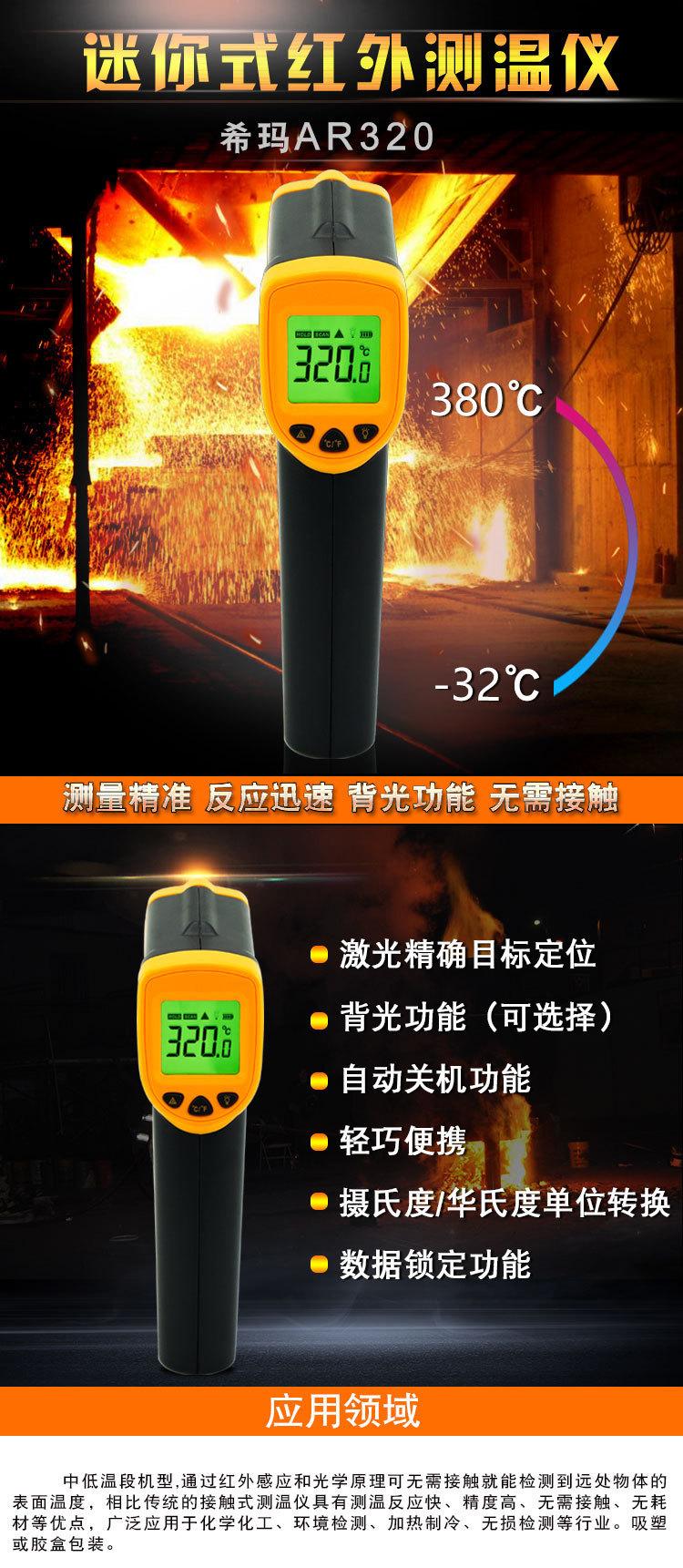 Termómetro infrarrojo a prueba de explosiones Hima AR320, para uso industrial doméstico, para hornear, medir la temperatura del aceite, el agua, el aire acondicionado y la calefacción por suelo radiante.