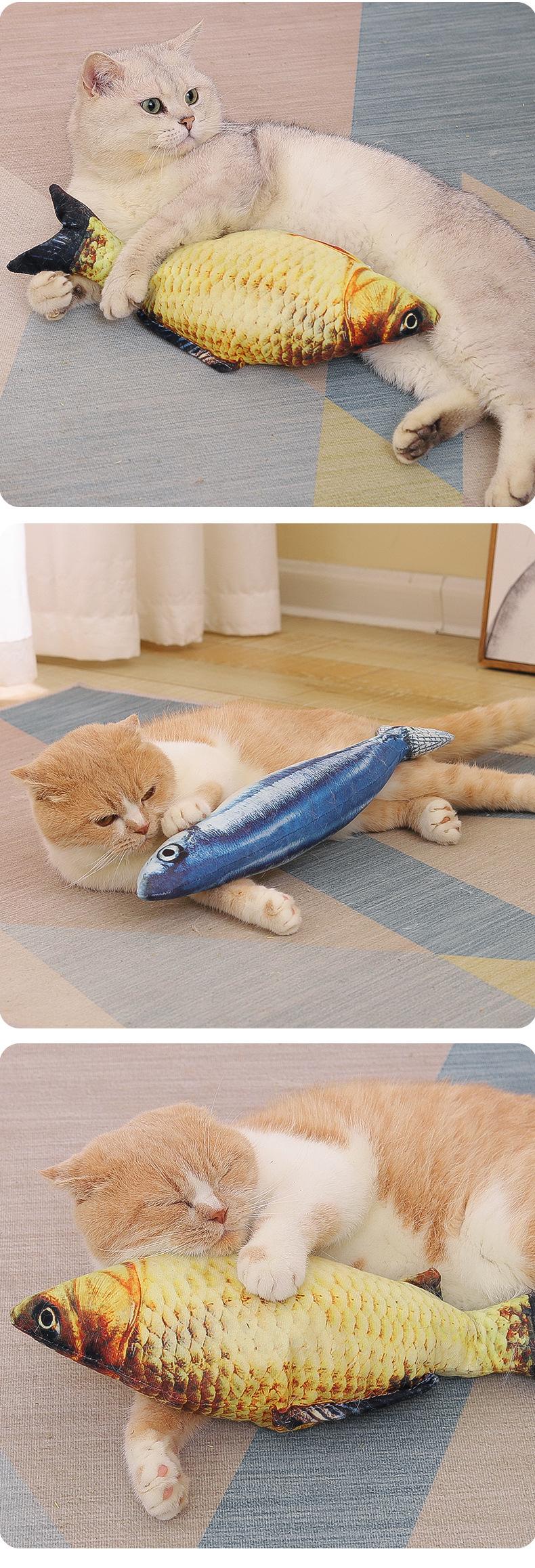 Juguete Masticable de Peluche de Hierba Gatera con Forma de Pez Muñeco Gato Almohada Varita para Gatos Mascota Gato Juguete de Pez Realista