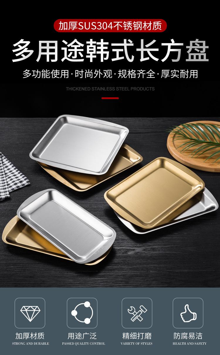 Compra Plato cuadrado de acero inoxidable 304, bandeja rectangular de estilo coreano, plato para barbacoa, plato plano dorado para aperitivos. al por mayor en Joom.pro