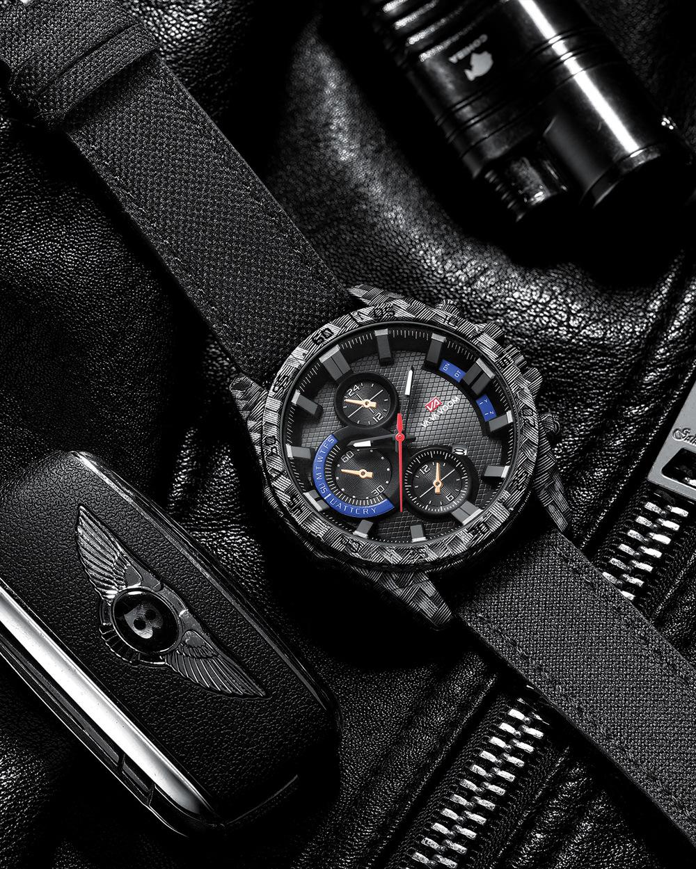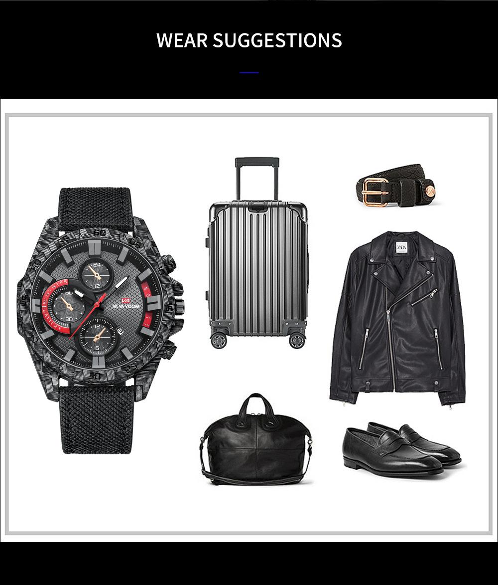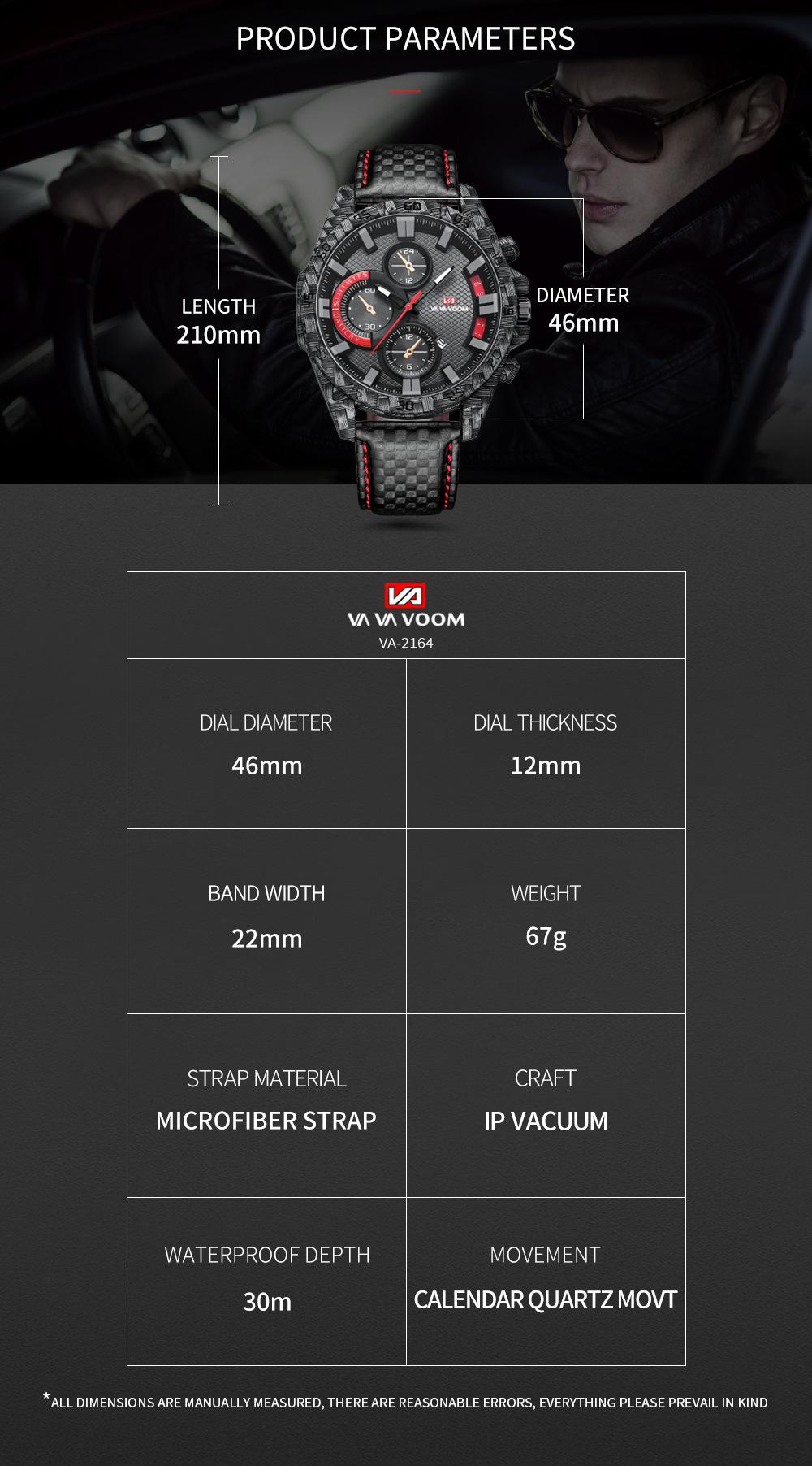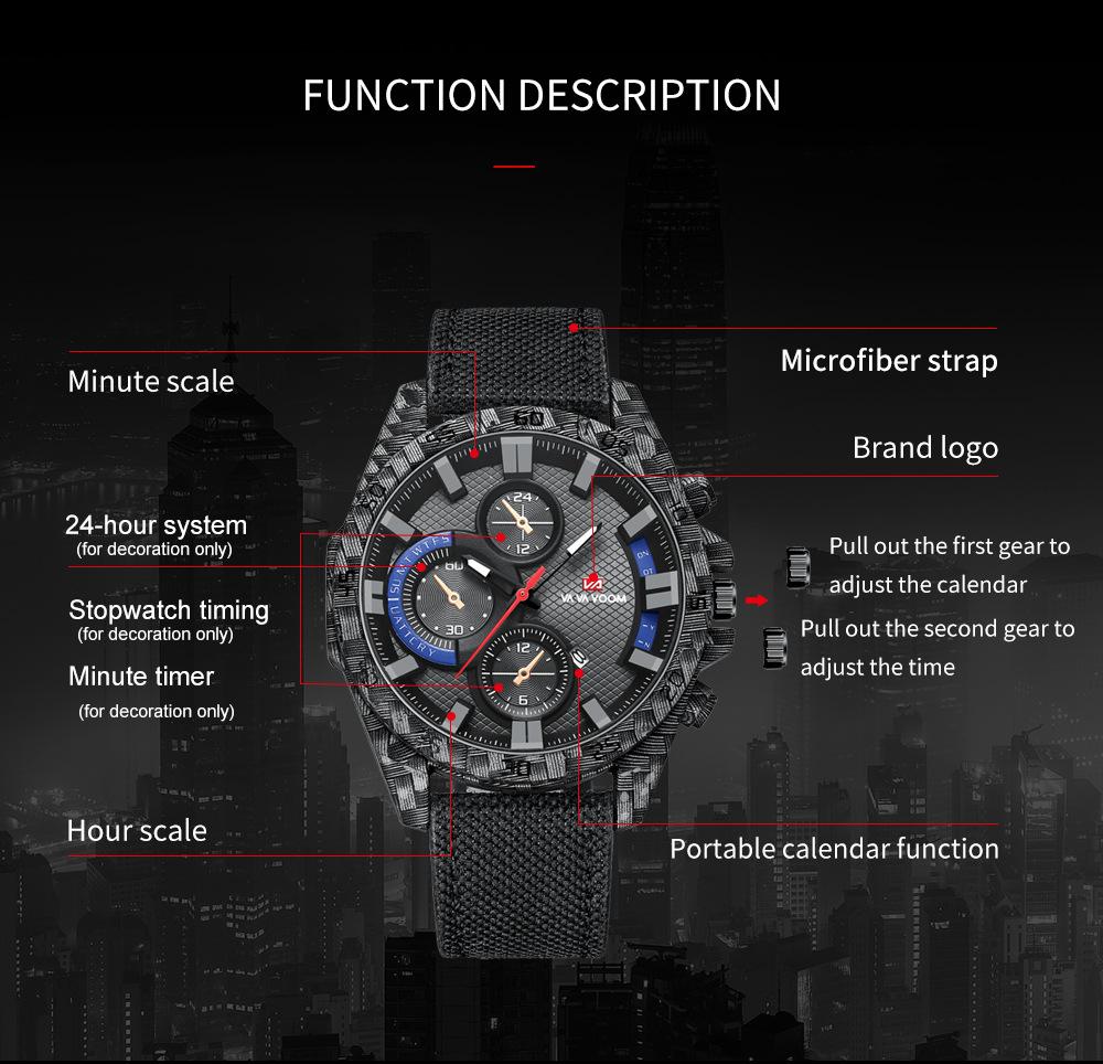 Vavavoom Elemento de Fibra de Carbono Relojes de Pulsera para Hombre Impermeables Relojes Deportivos para Exterior con Esfera Grande