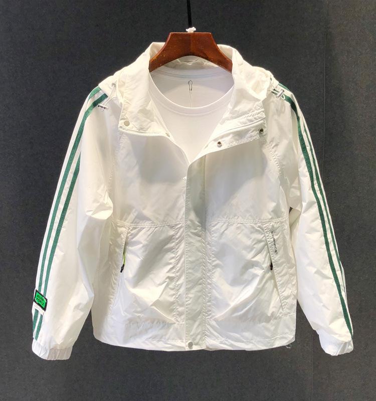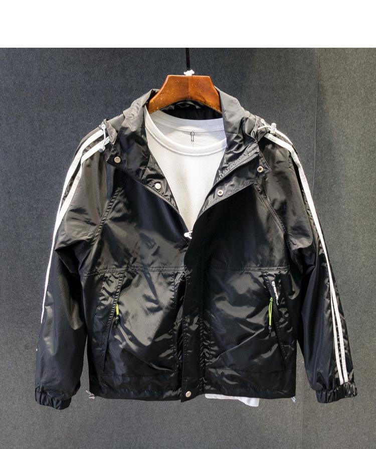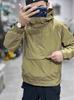 Chaqueta con capucha informal de otoño e invierno 2023, cortavientos multibolsillos a rayas para hombre, chaqueta de trabajo holgada informal
