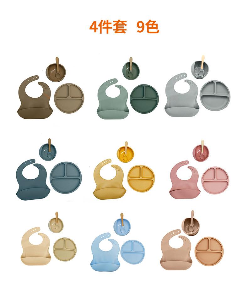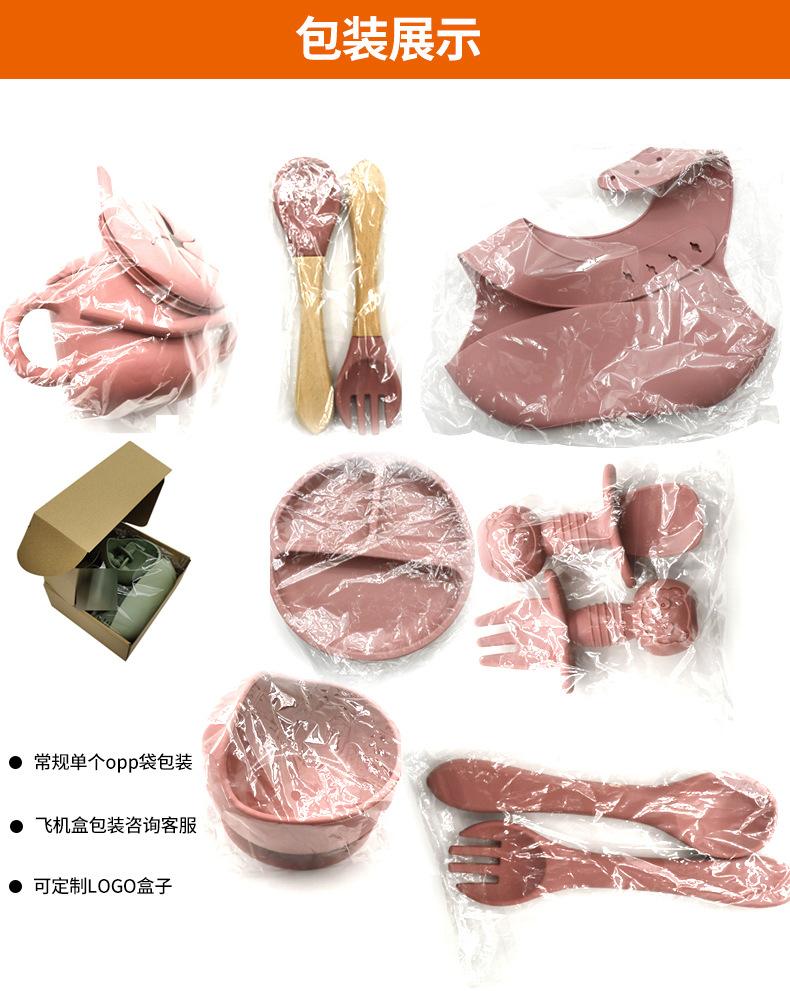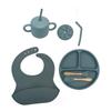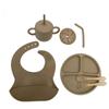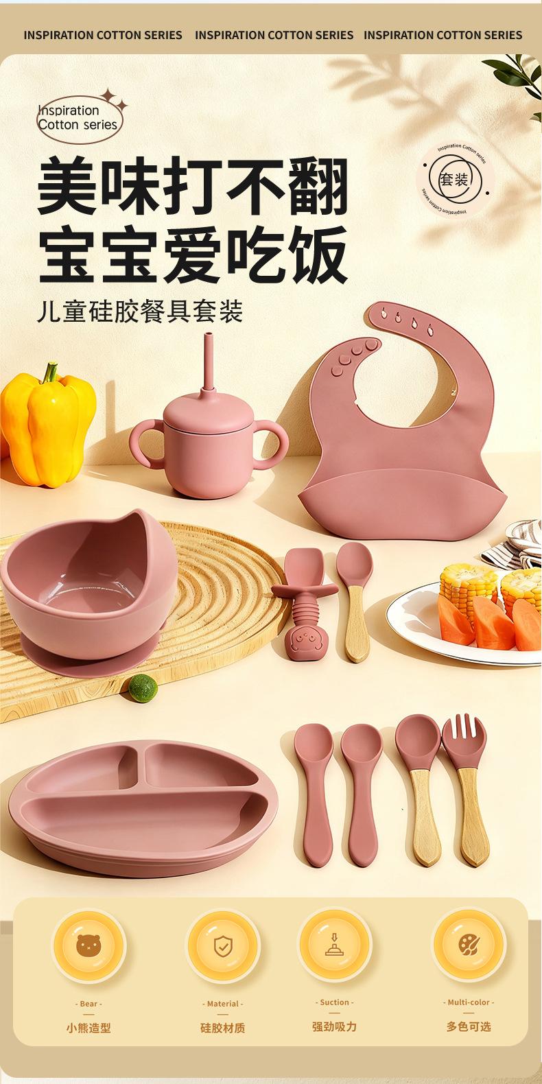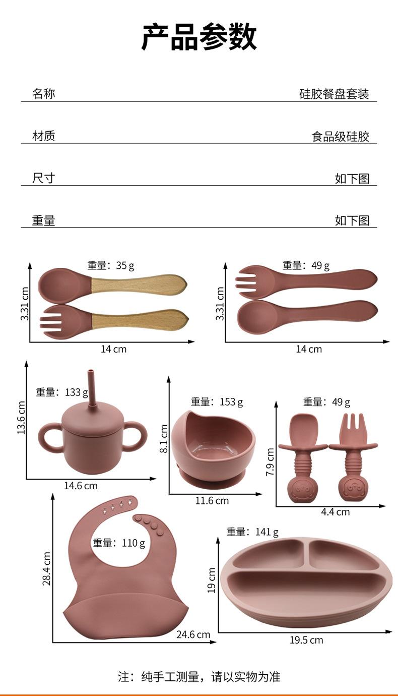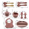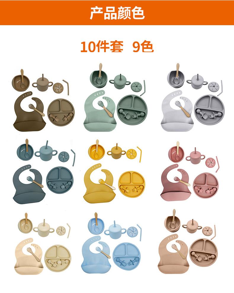 Vajilla para Niños Juego de Alimentación de Diez Piezas Tazón para Comida de Bebé Plato para Cena Cuchara Tenedor Babero Plato de Cena de Silicona