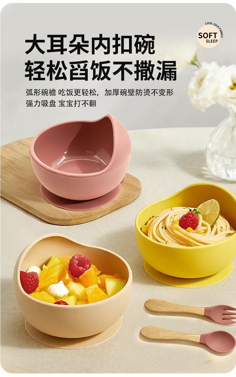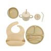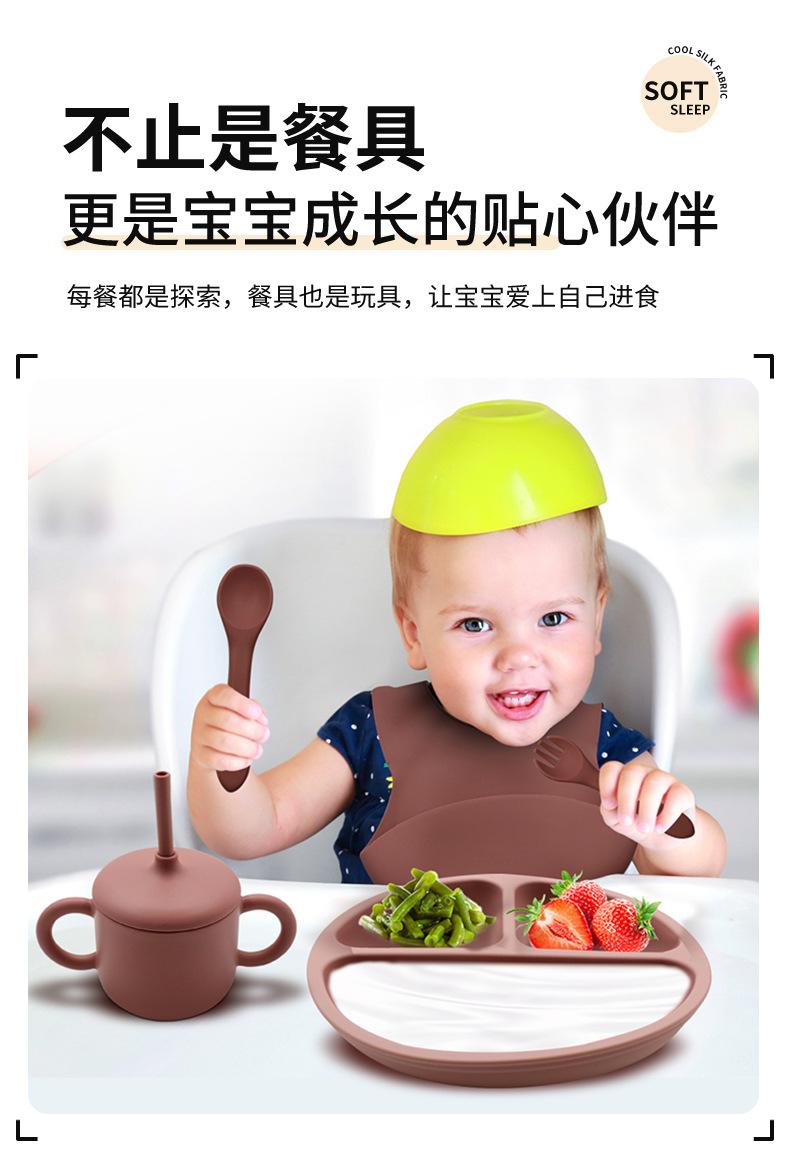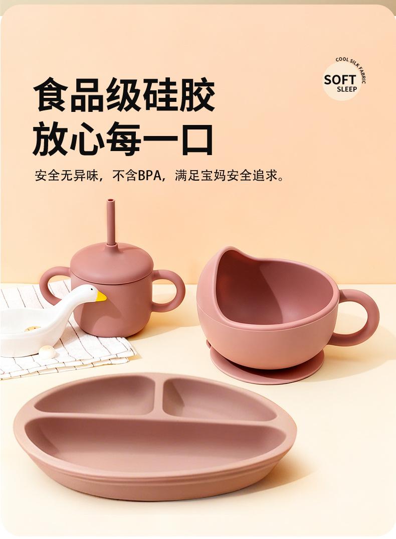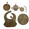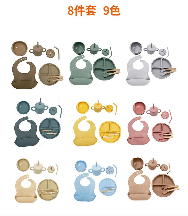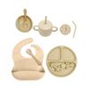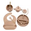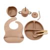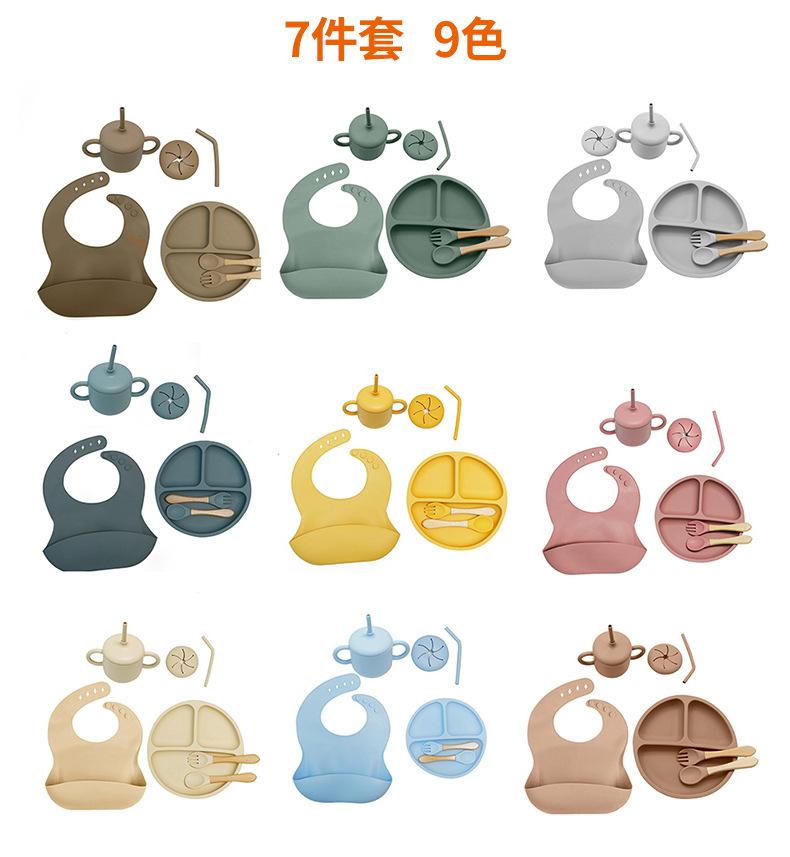Vajilla para Niños Juego de Alimentación de Diez Piezas Tazón para Comida de Bebé Plato para Cena Cuchara Tenedor Babero Plato de Cena de Silicona