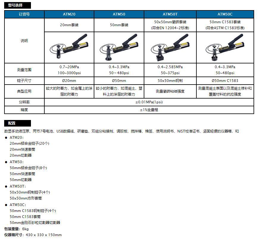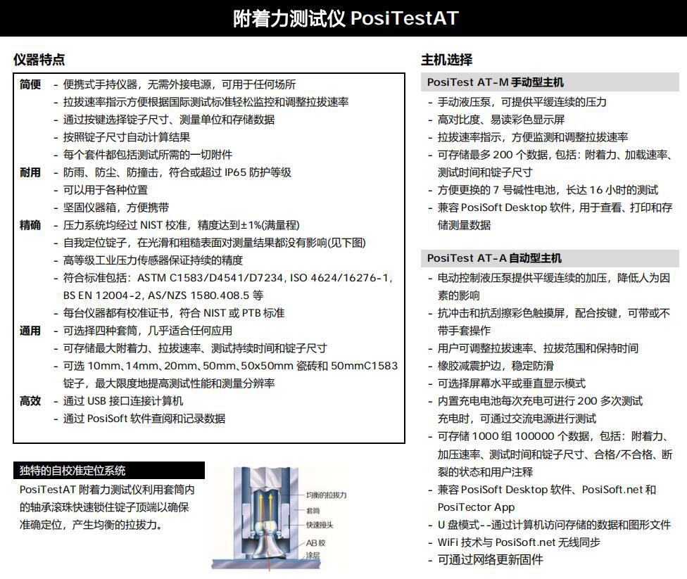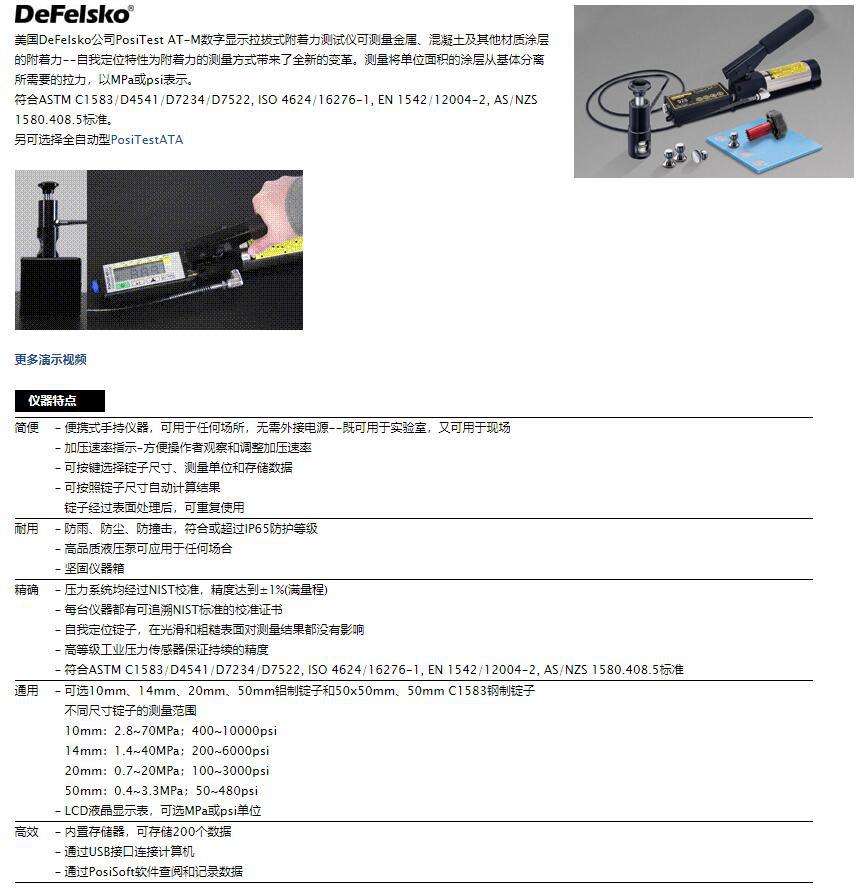 Probador de Adhesión por Tracción con Pantalla Digital PosiTest AT de DeFelsko, EE. UU.Puede medir la adherencia de recubrimientos sobre metal, concreto y otros materiales.Probador de Adhesión por Tracción PosiTest ATLa función de auto-posicionamiento revoluciona la forma en que se mide la adhesión.Probador de Adhesión por Tracción PosiTest ATMedir la fuerza de tracción requerida para separar una unidad de área de recubrimiento del sustrato, expresada en MPa o psi,Probador de Adhesión por Tracción PosiTest ATCumple con las normas ATSM D4541 e ISO 4624.