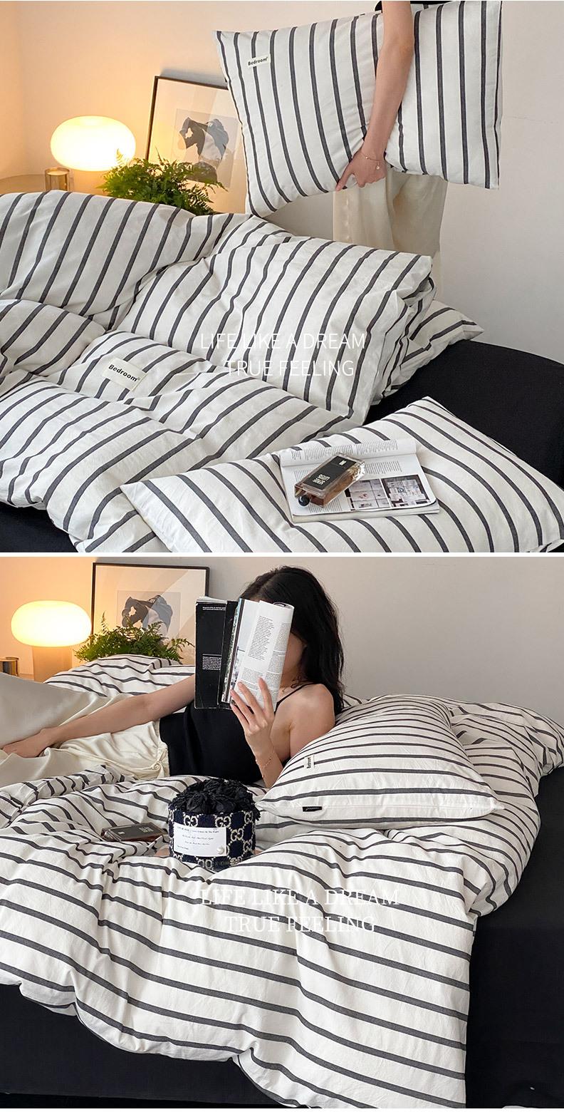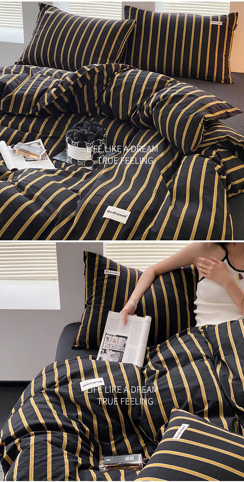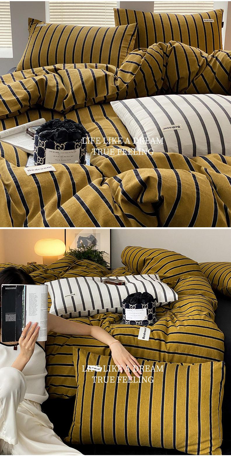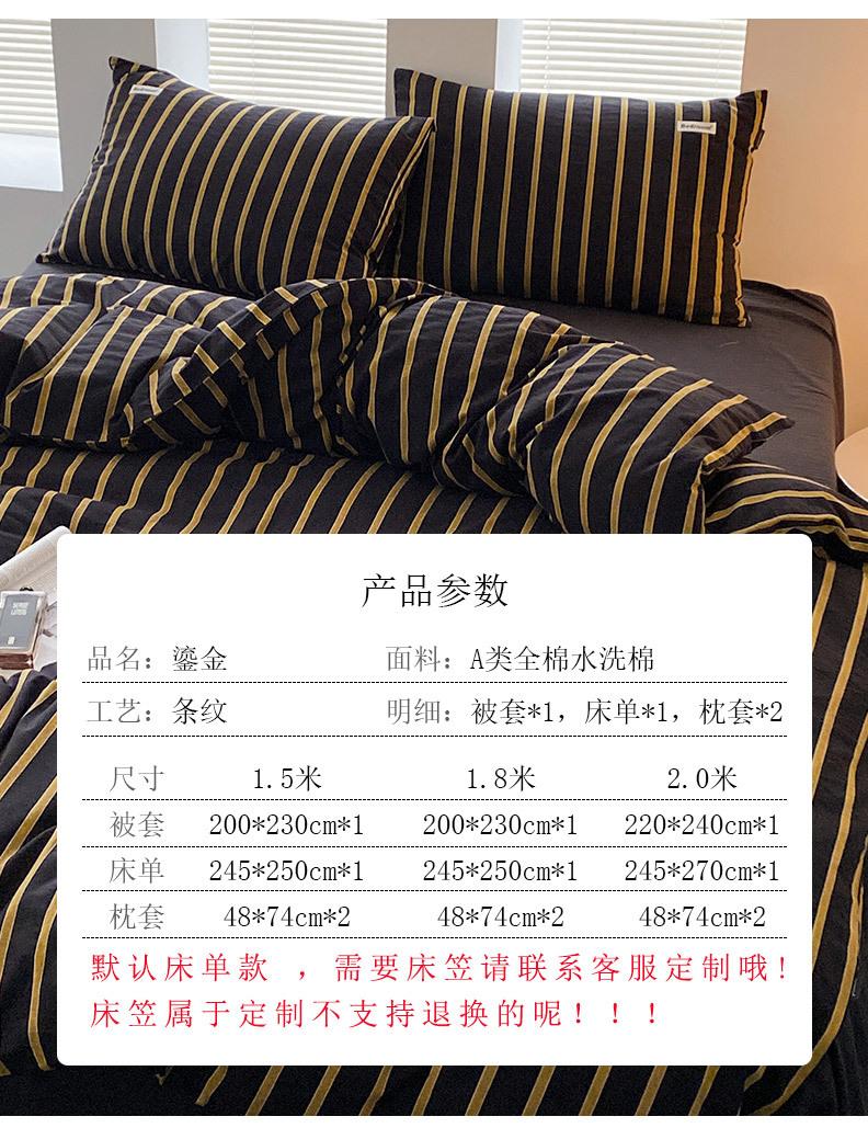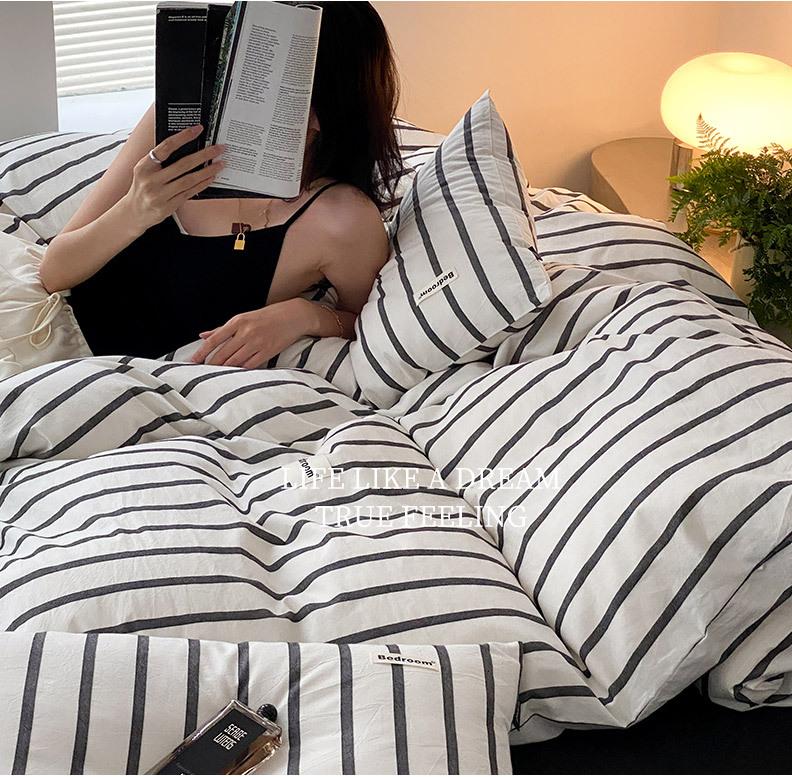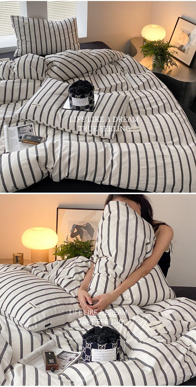 Edredón de cuatro piezas de jacquard lavado de algodón puro de clase A, funda nórdica japonesa a rayas simples, sábana de algodón puro de 1,8"