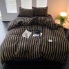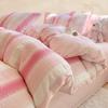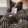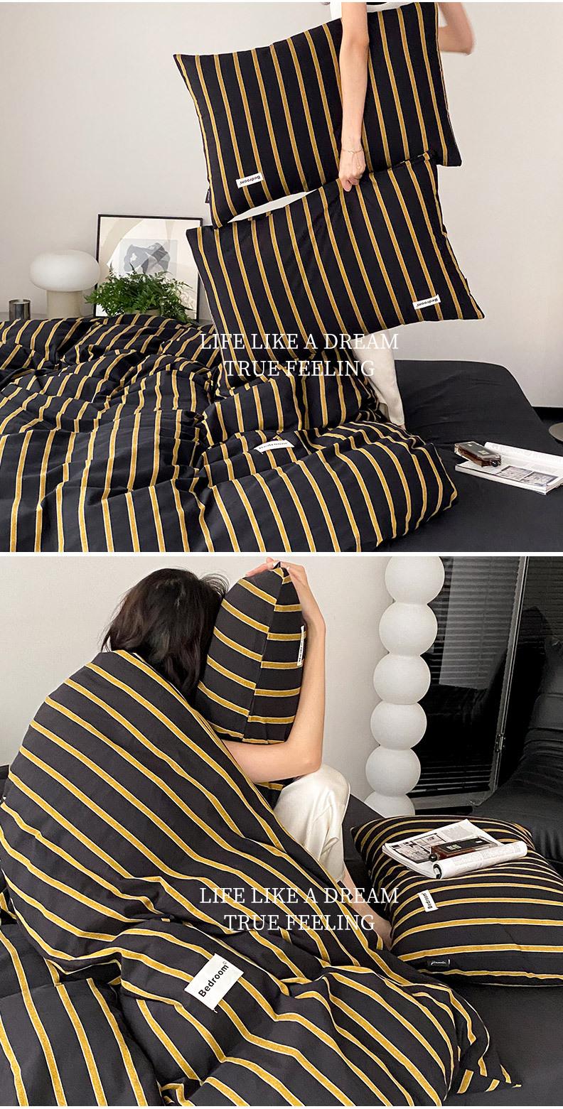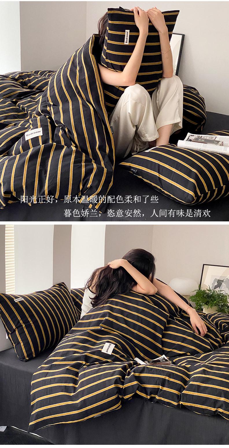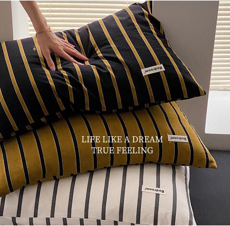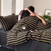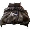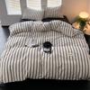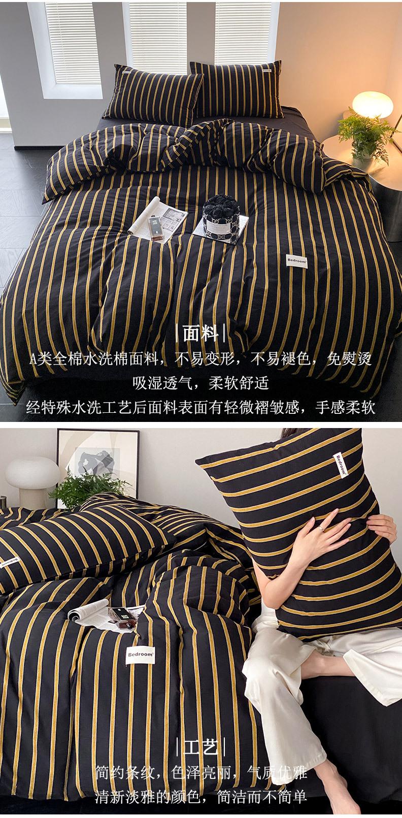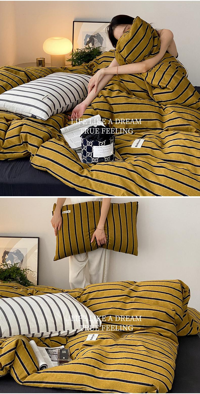 Edredón de cuatro piezas de jacquard lavado de algodón puro de clase A, funda nórdica japonesa a rayas simples, sábana de algodón puro de 1,8"