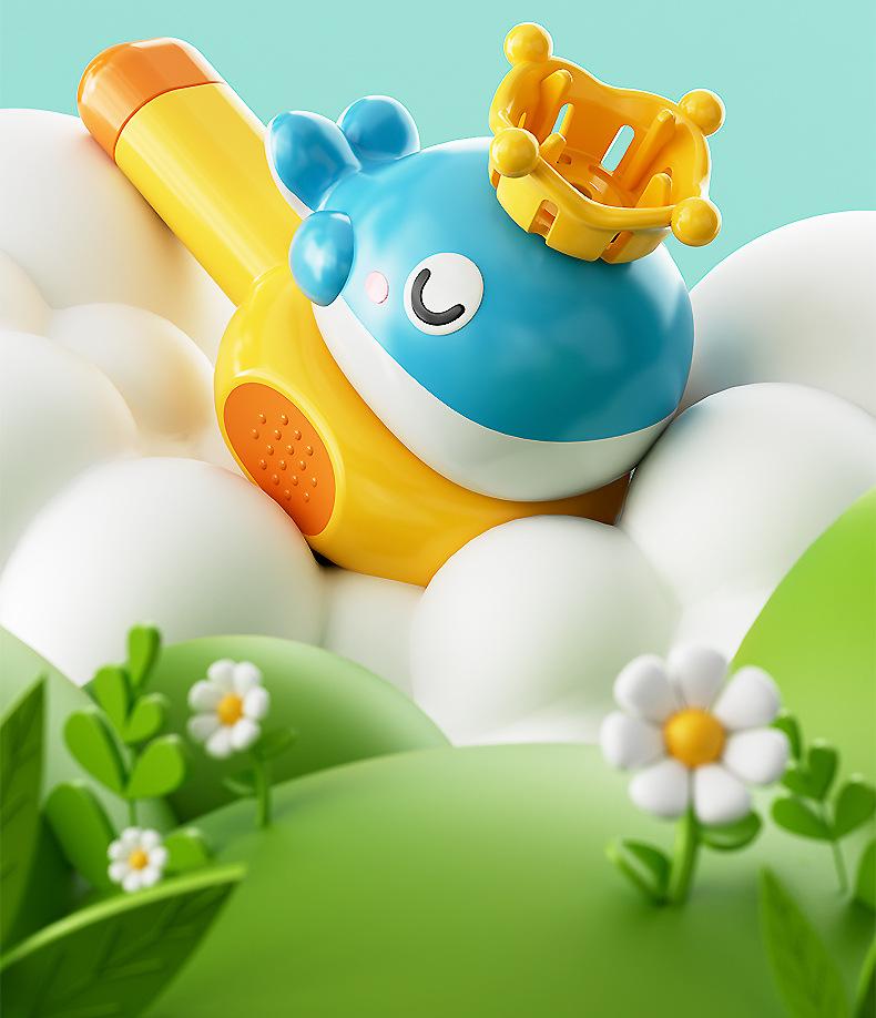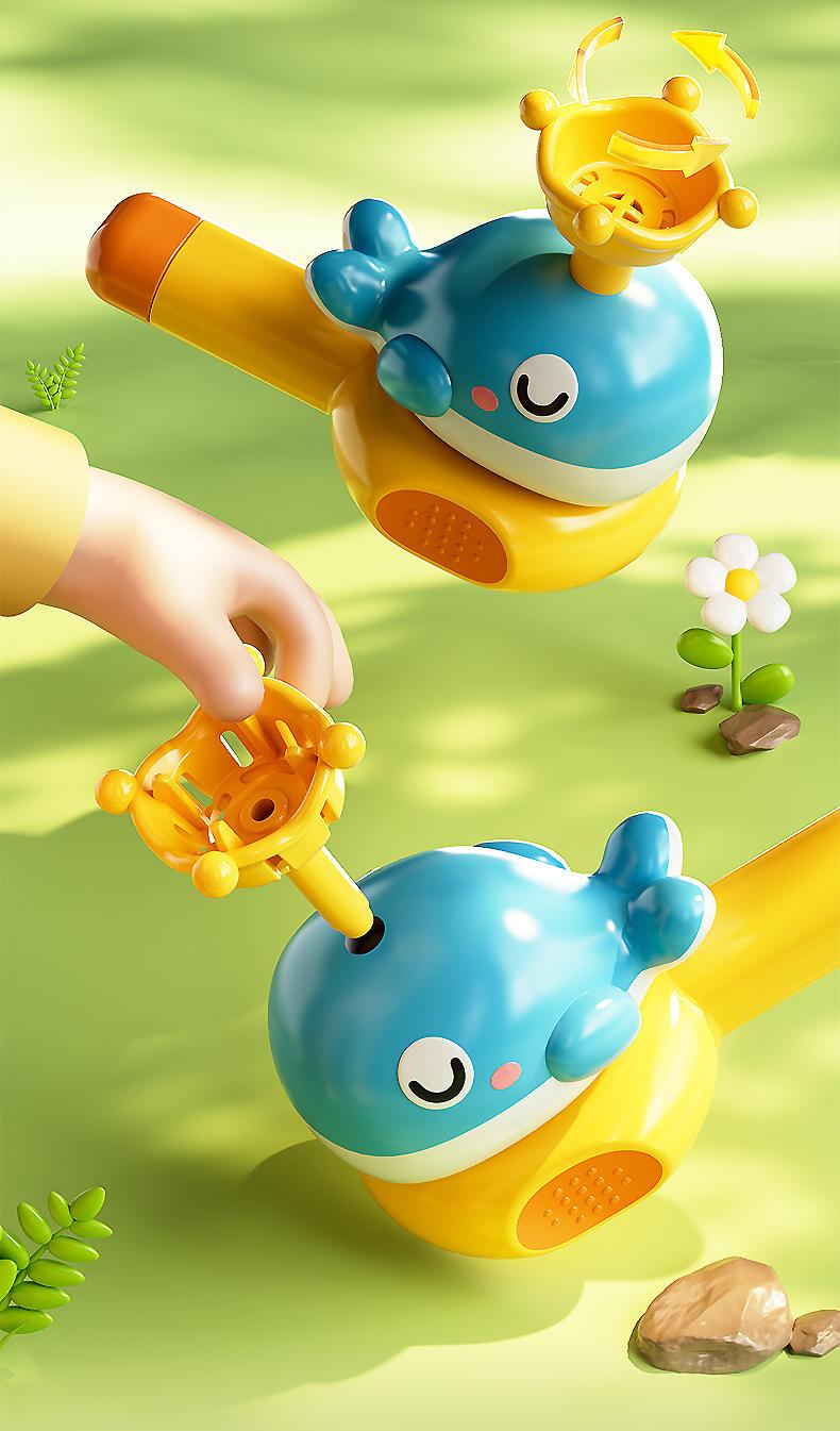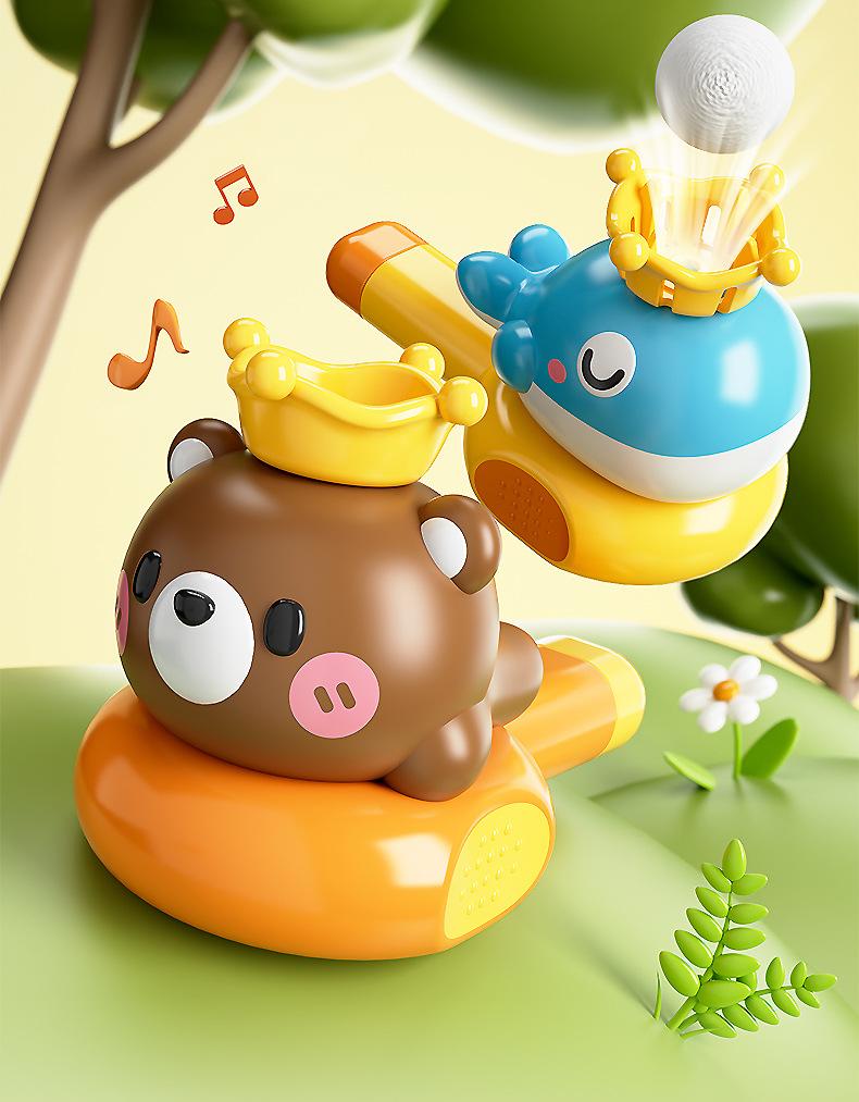Juguete de principio de Bernoulli con forma de bola suspendida que sopla de dibujos animados para niños, mini ballena linda, oso marrón, cuerno y silbato.