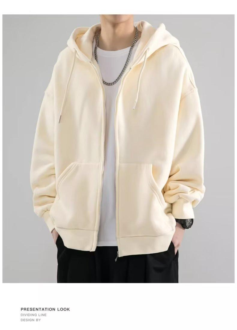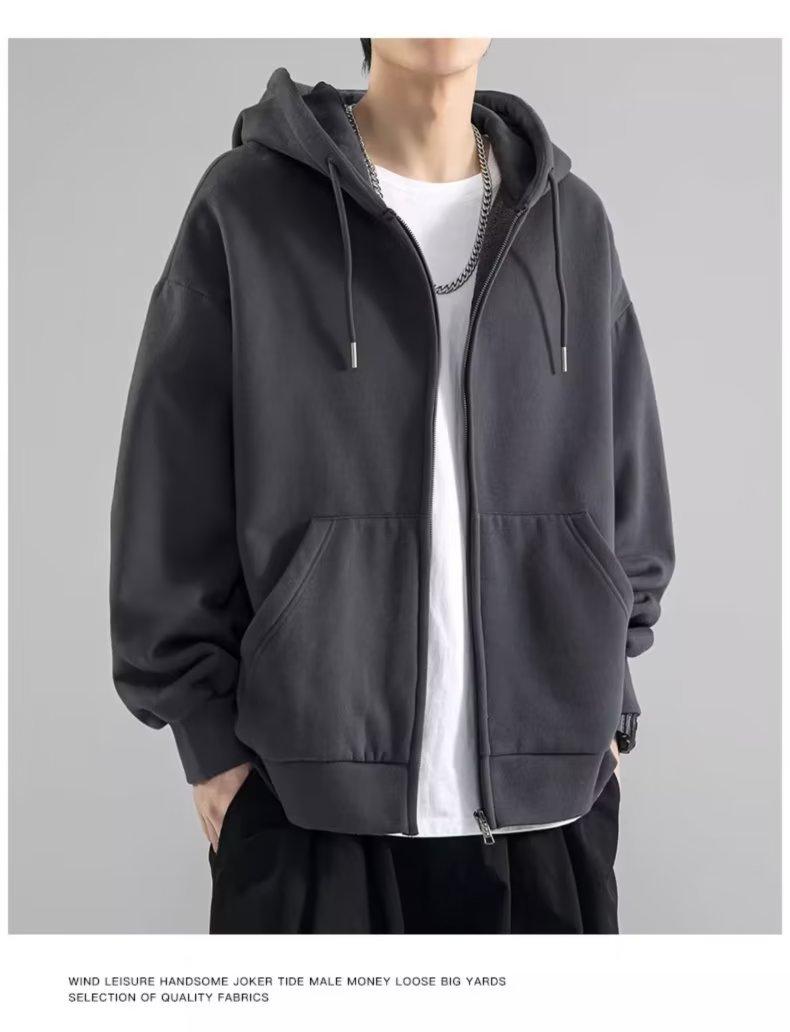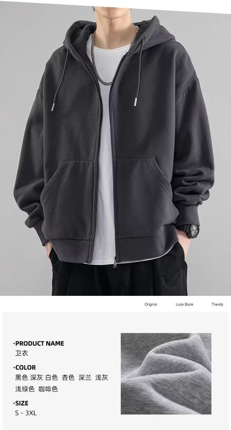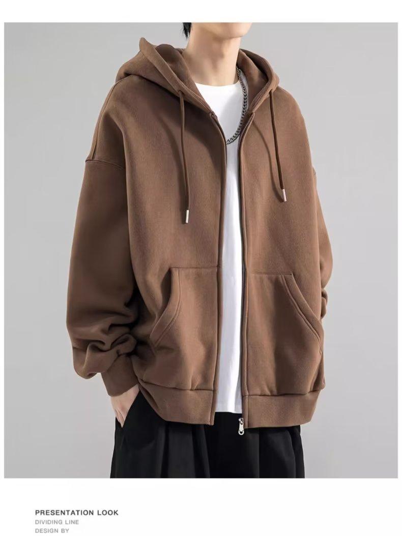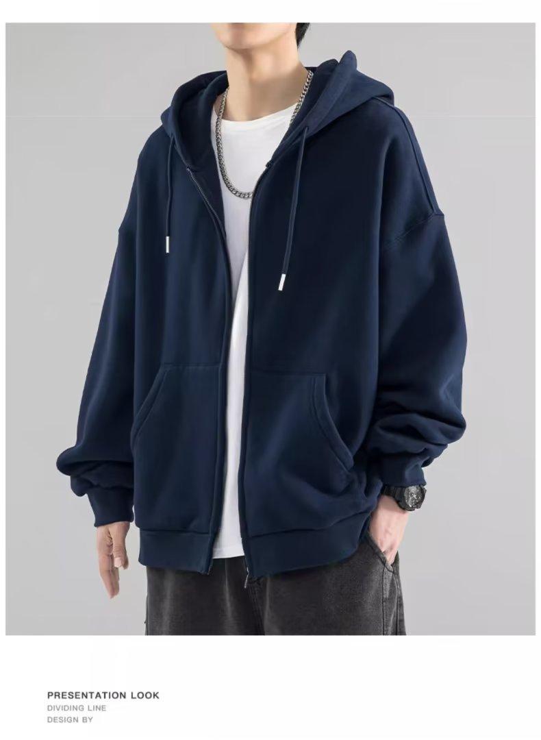 Chaqueta tipo cárdigan de color liso con capucha para hombre, marca de moda de primavera y otoño, estilo informal de calle alta estadounidense, holgada, novedad de 2023