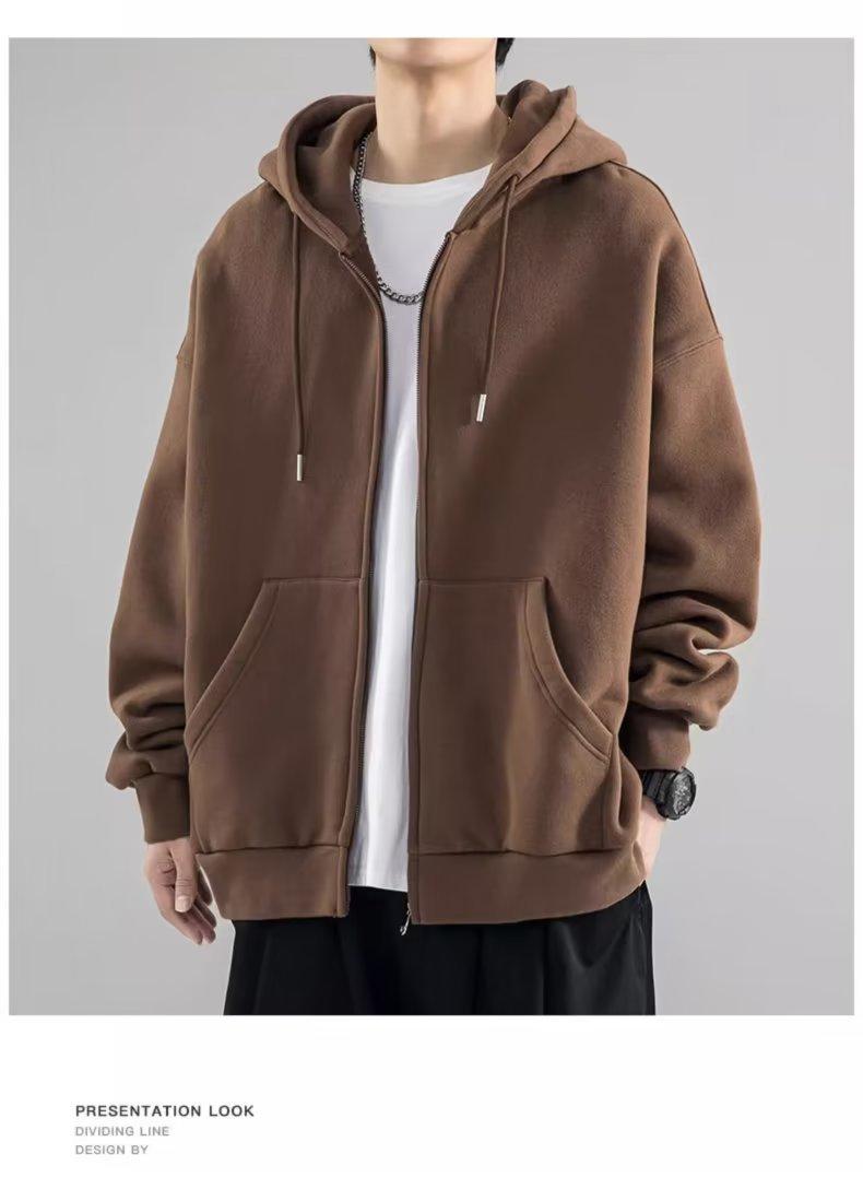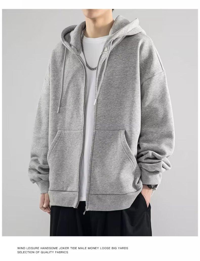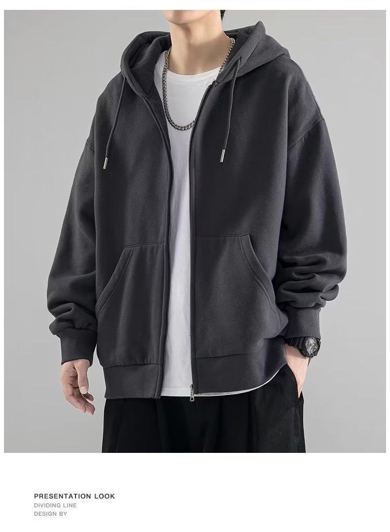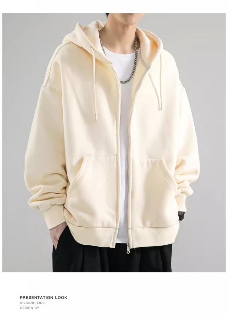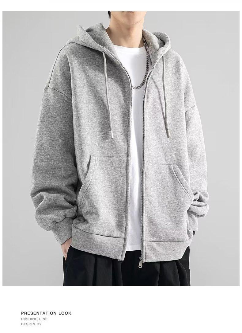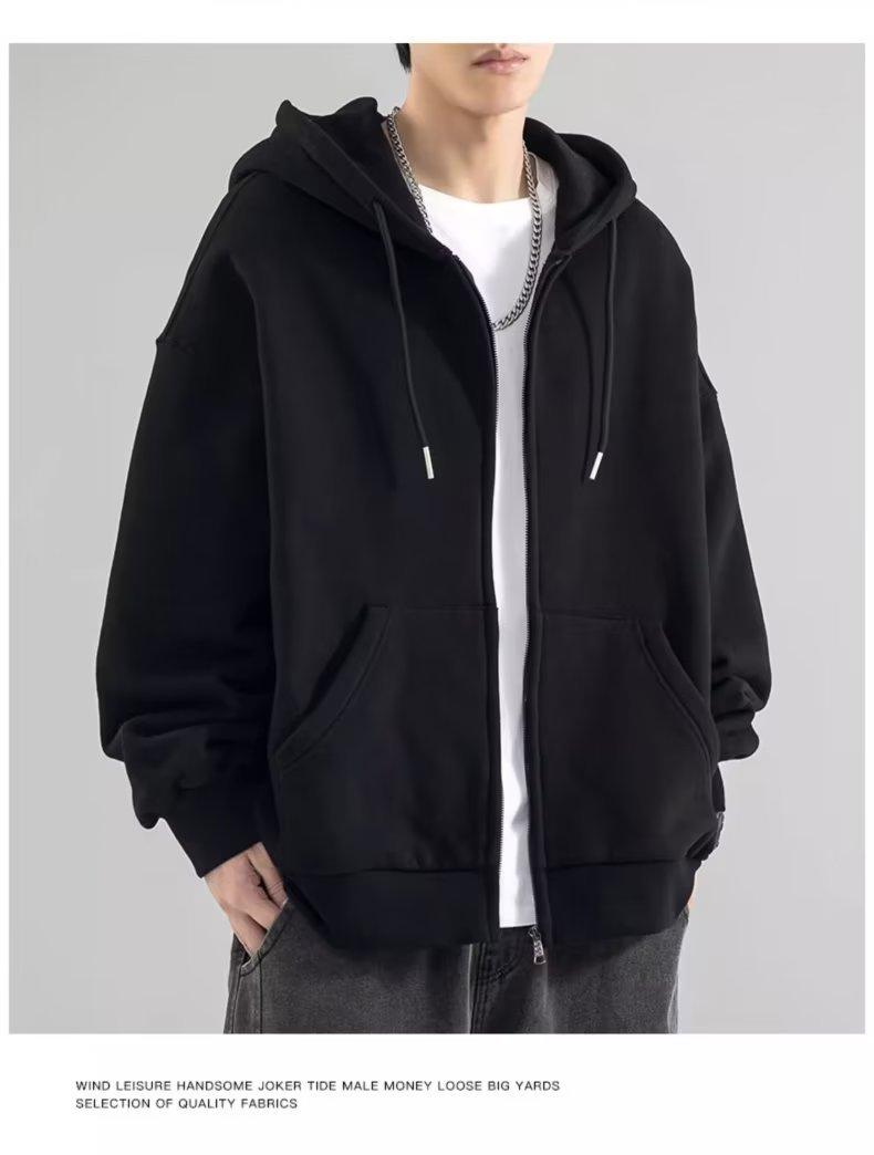 Chaqueta tipo cárdigan de color liso con capucha para hombre, marca de moda de primavera y otoño, estilo informal de calle alta estadounidense, holgada, novedad de 2023