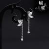Nuevos aretes de tuerca de borla de lazo de plata esterlina S925, nicho de moda, lujo ligero, joyería de oreja de alta gama para mujer, venta al por mayor de origen