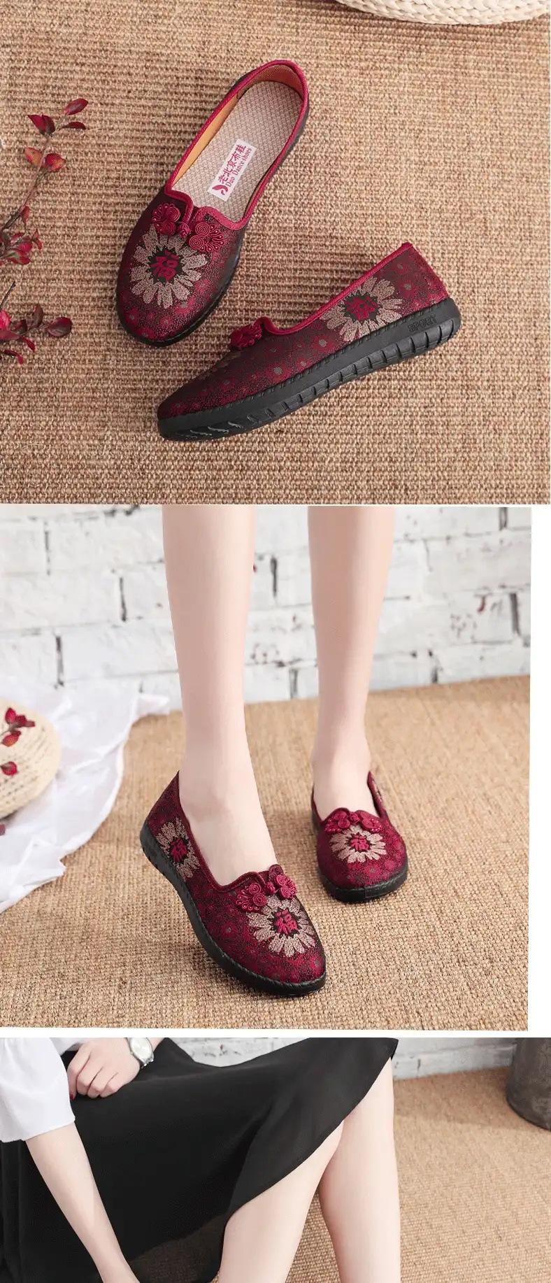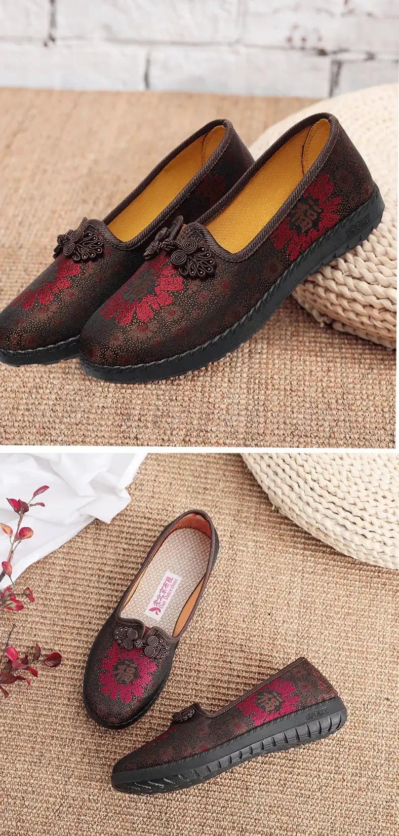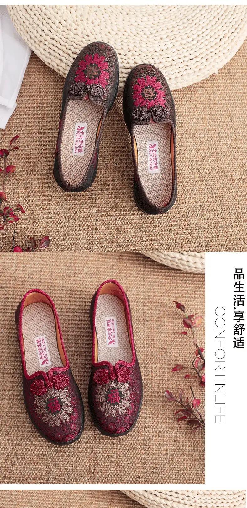 Zapatos de Tela de Pekín Antiguos Zapatos de Primavera para Mujer de Suela Blanda Transpirables para Madre y Personas Mayores Zapatos de Leche Talla Grande Zapatos para Mediana Edad y Personas Mayores
